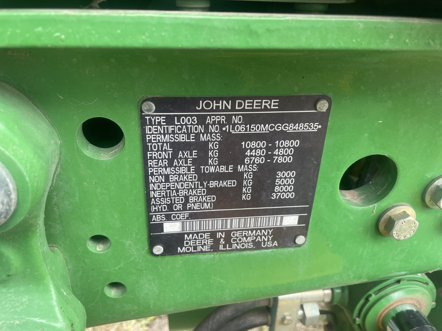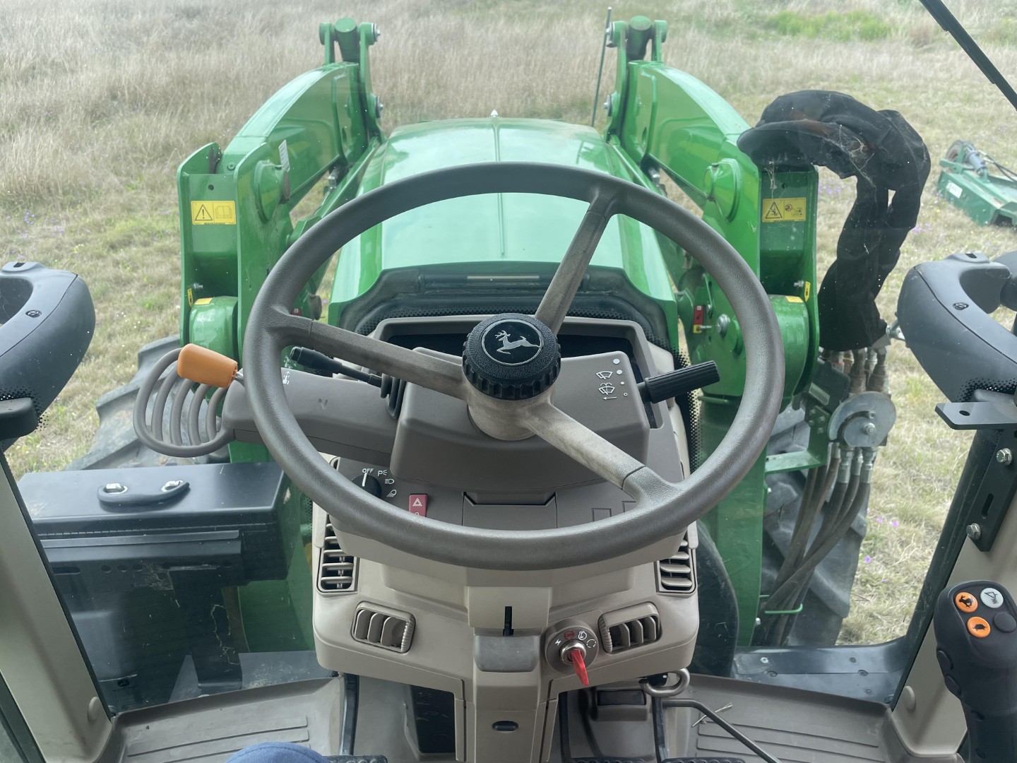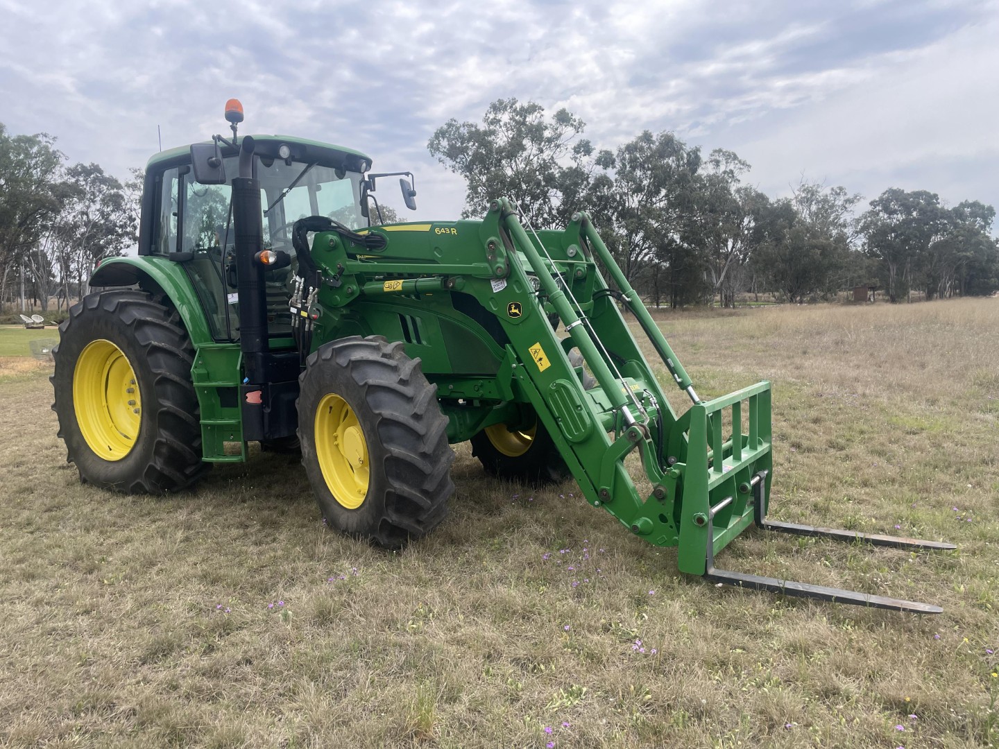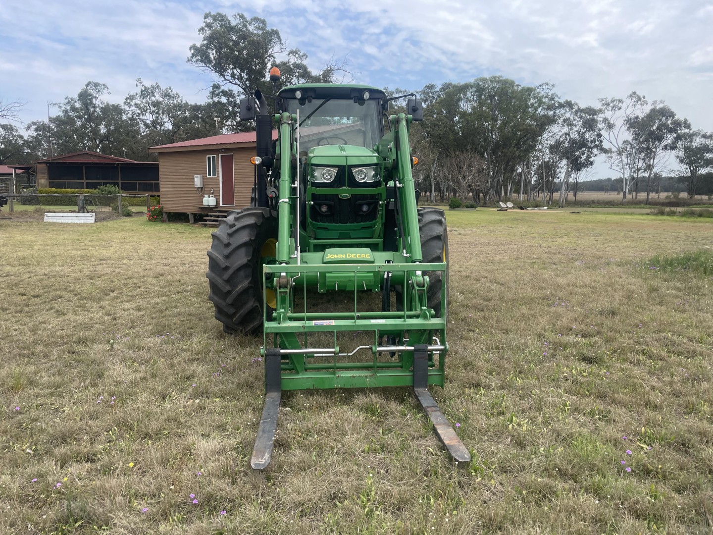 Lot 1. John Deere 6150M Tractor with model 643R front end loader, 1285 hours, bought new and in top order, forks and 4 in1 McCormick bucket, no ad blue fitted. Serial No: 1CC643RCKLX210219.
