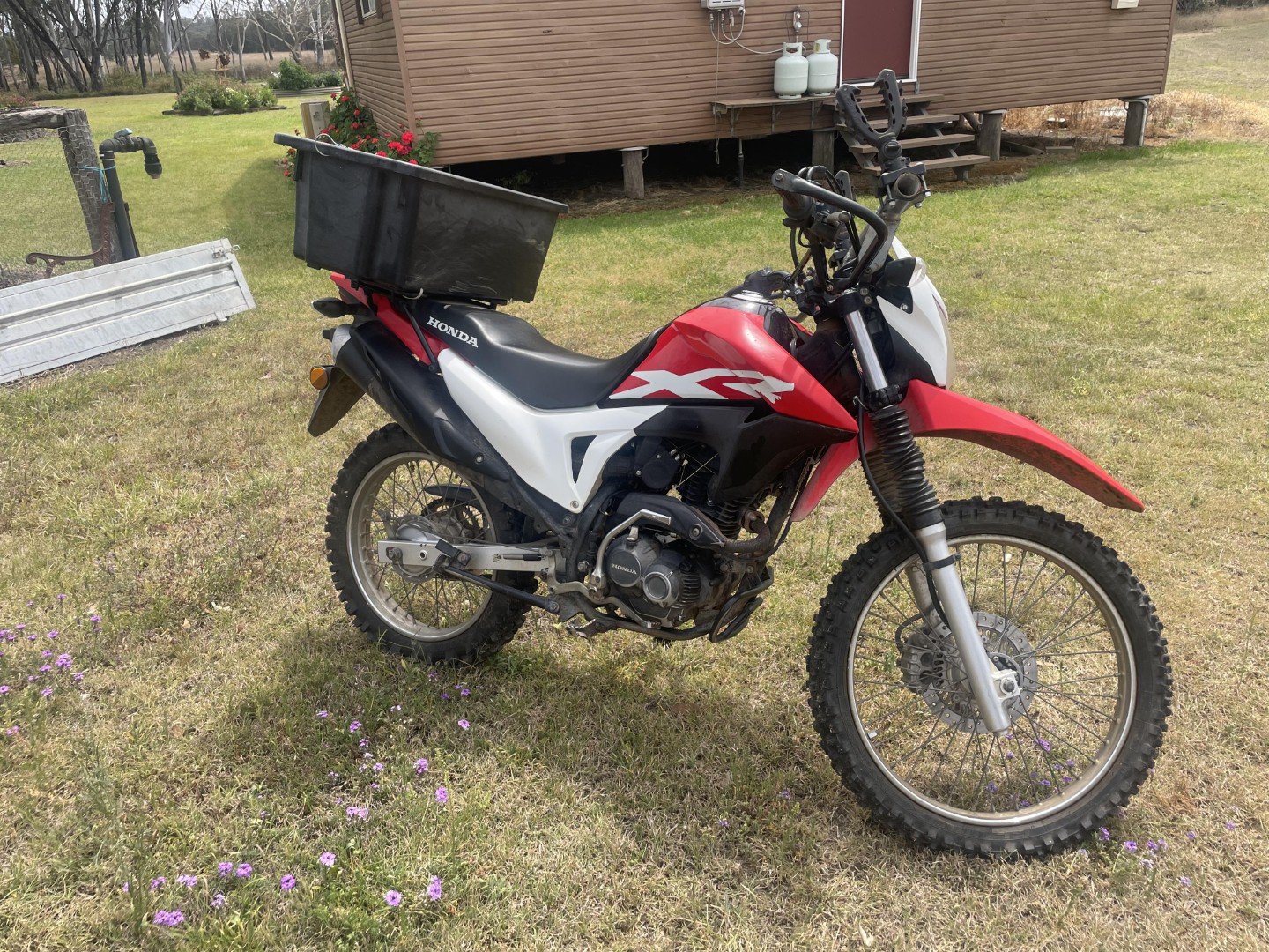 Lot 10. Honda XR 190 bike with Ag fit out, rifle rack, has compliance plate for rego if required, 15,698 kms.