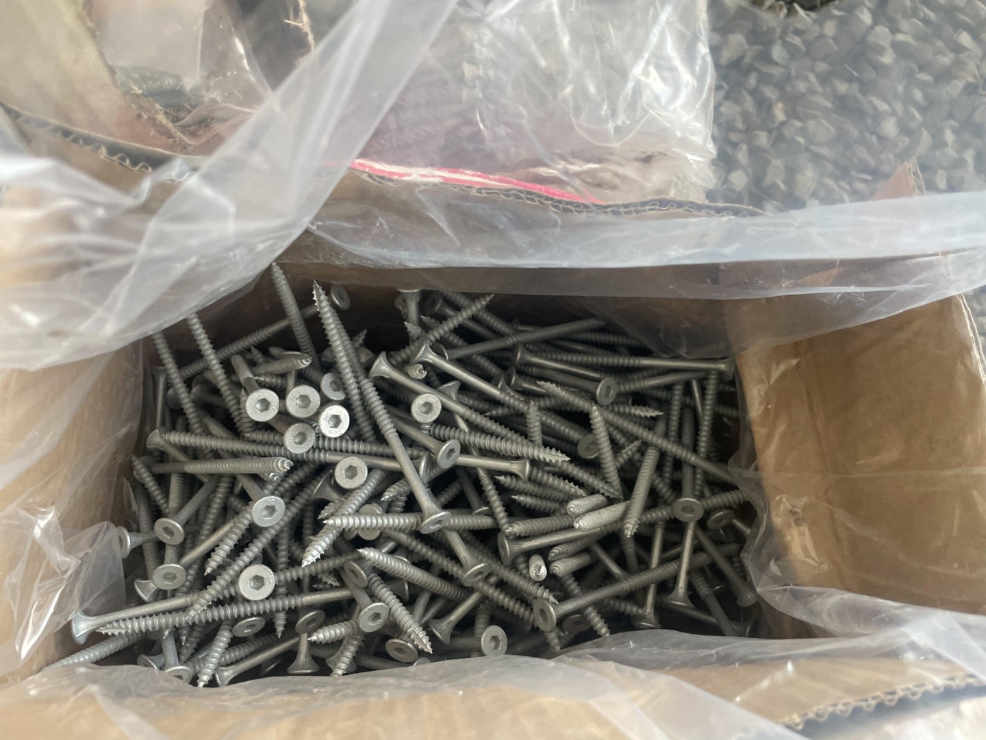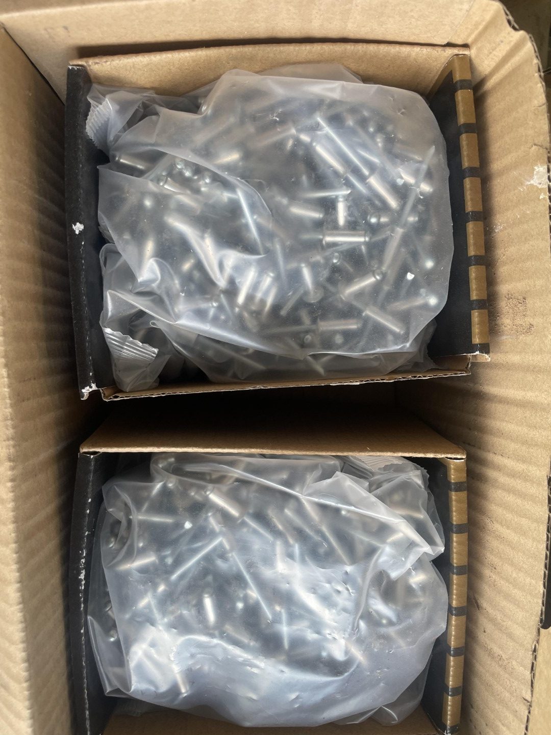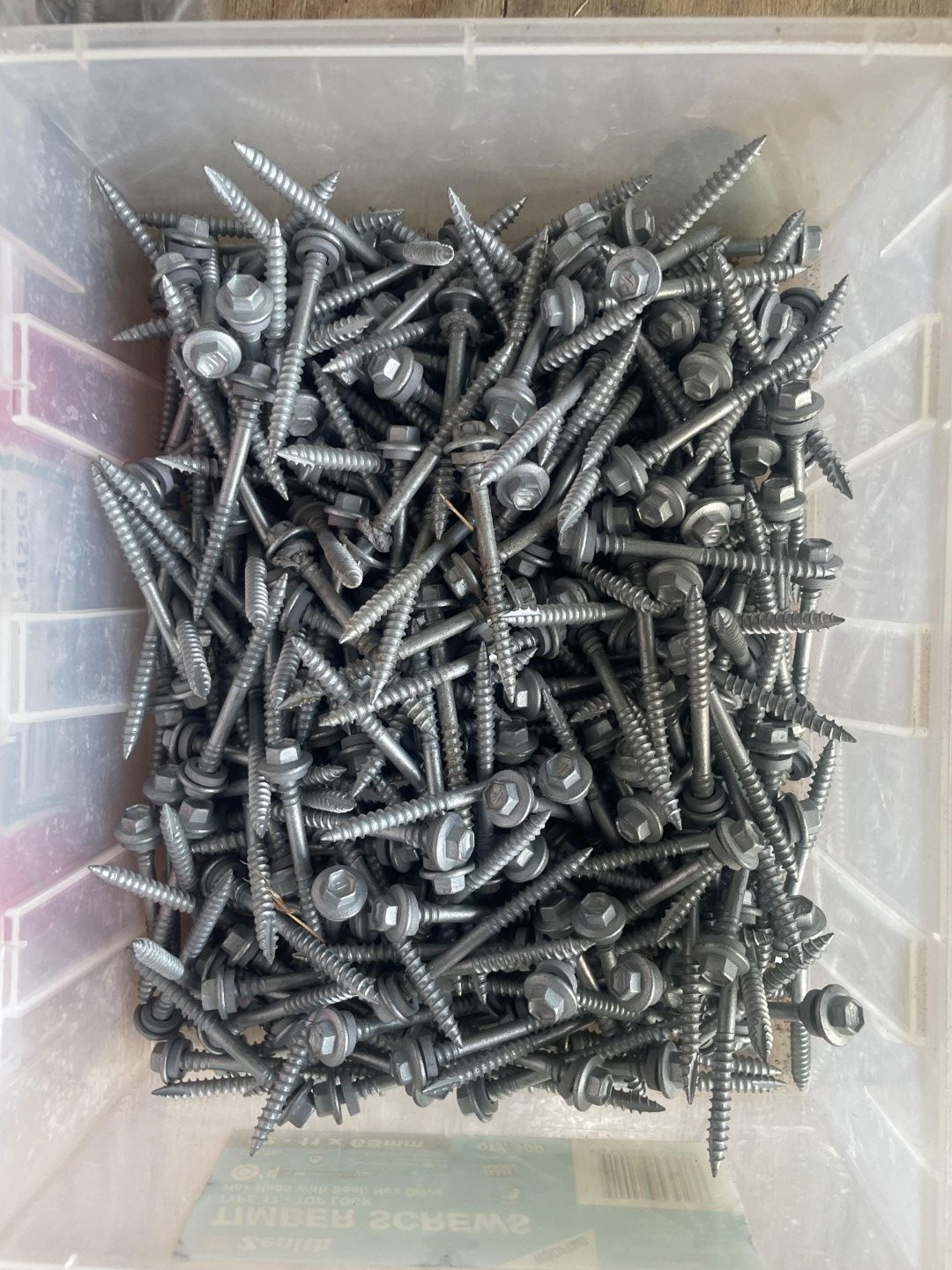 Lot 100. Qty timber hex head screws, Sundry Clamps, Bugle Head Screws, 2 x boxes of Rivets, Oval Cattle Rail Joiners.