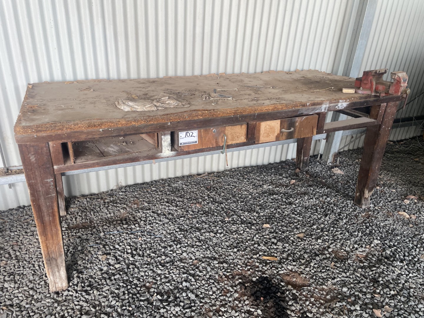 Lot 118. 2 Work Tables, timber tops, timber in poor condition.
