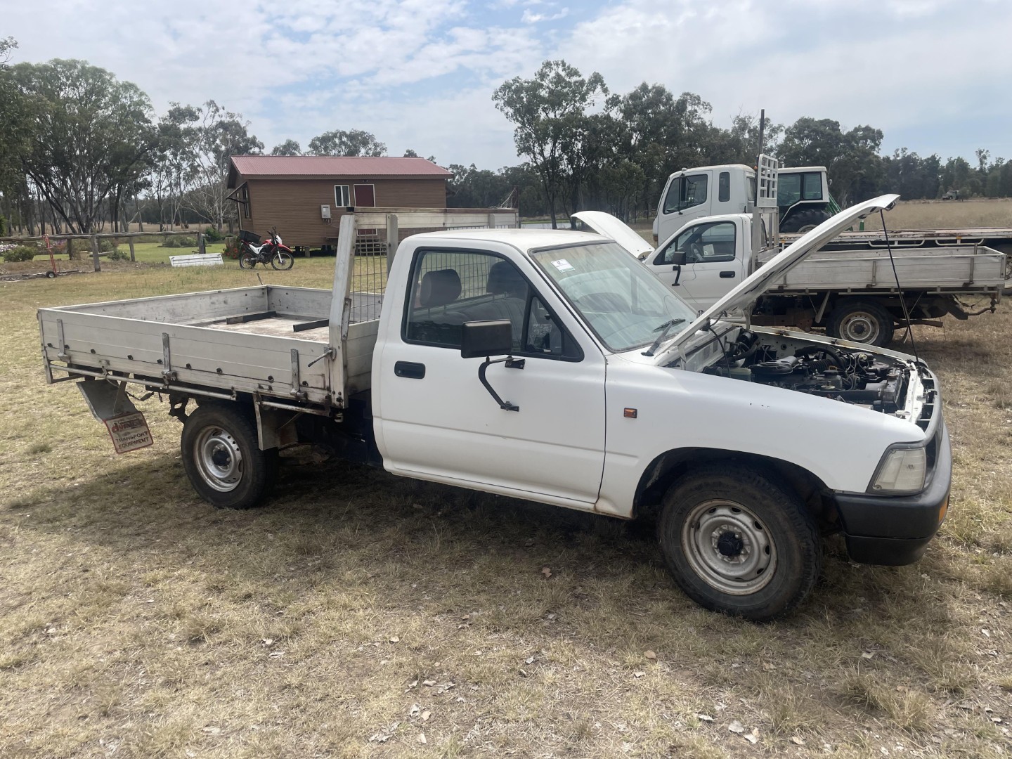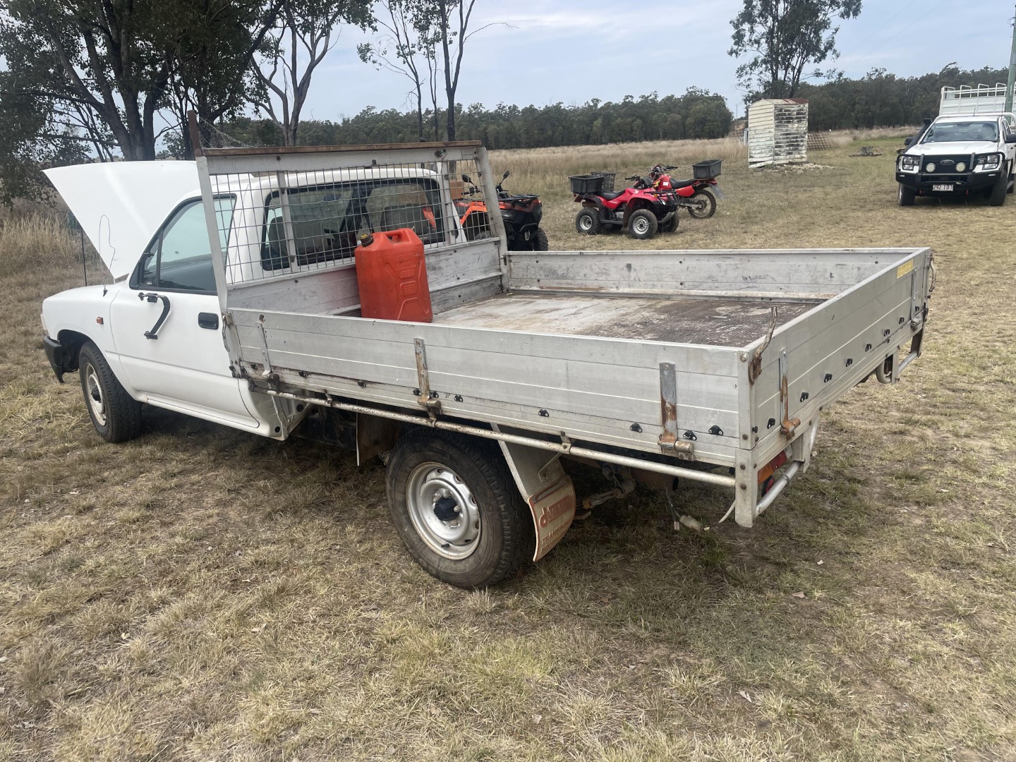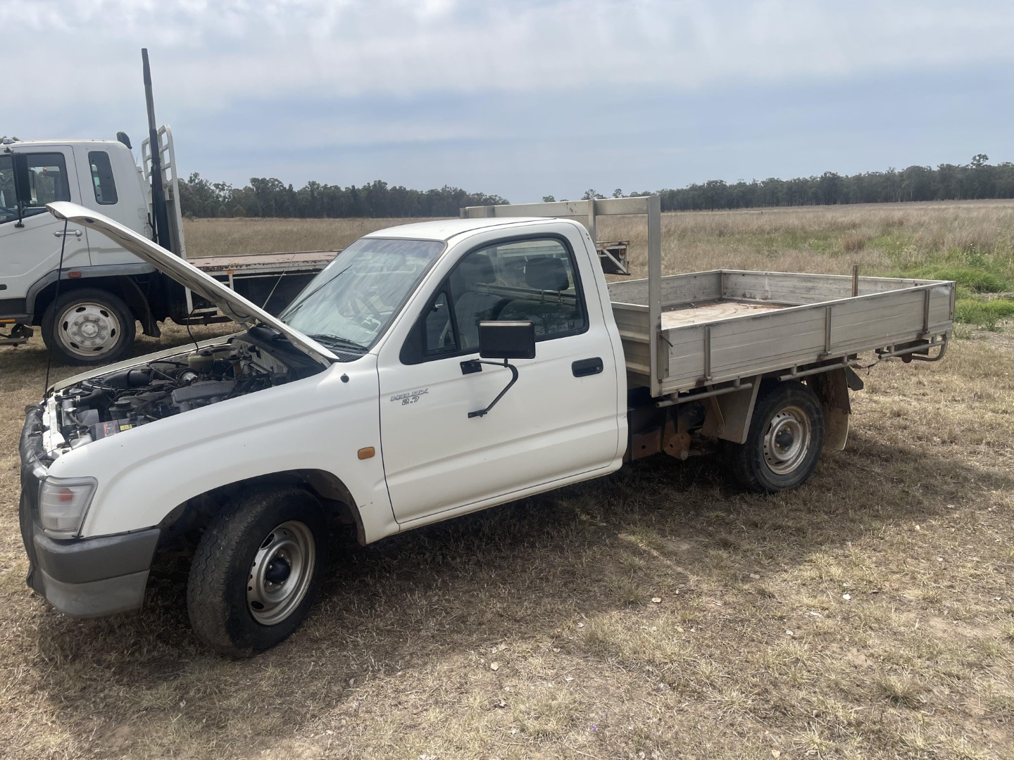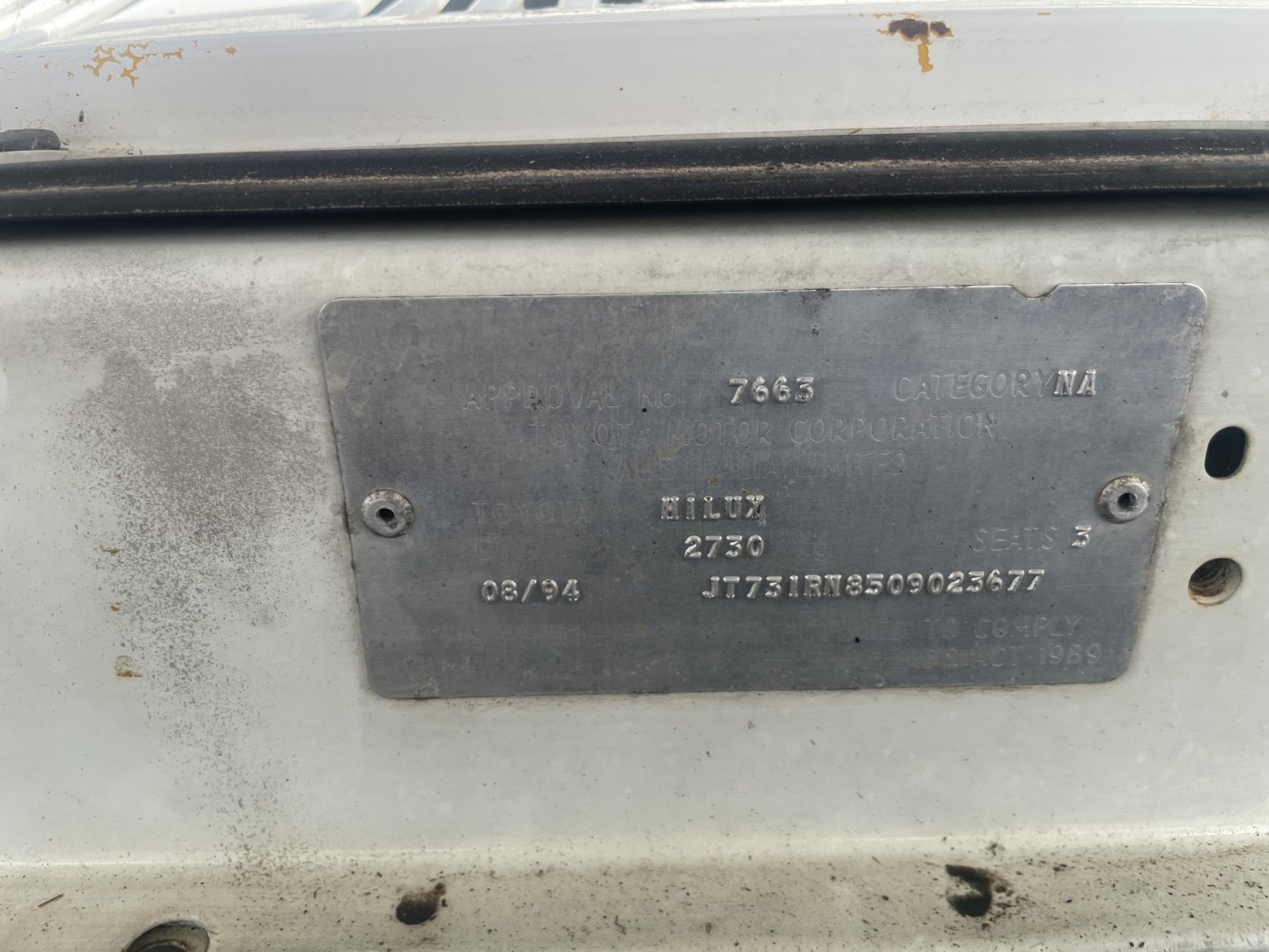 Lot 12. Toyota Hilux 2WD tray back Ute, 6/94 ,22 R engine, a/c not working, runs but not starting off key, runs but sold as is where is with no statutory warranty Vin JT31RN8509023677.