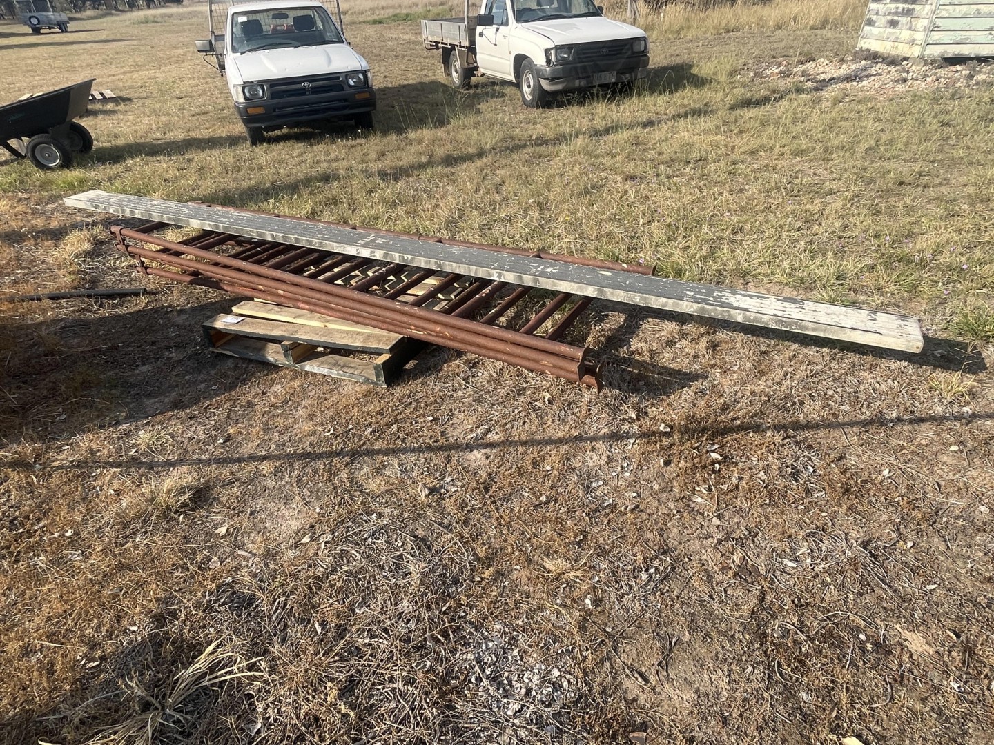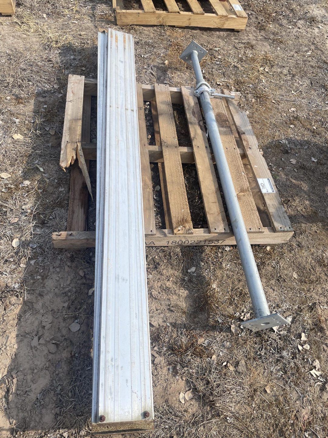 Lot 158. Steel Trestles x 2 approx. 10’ high, Alloy Plank approx. 5m.