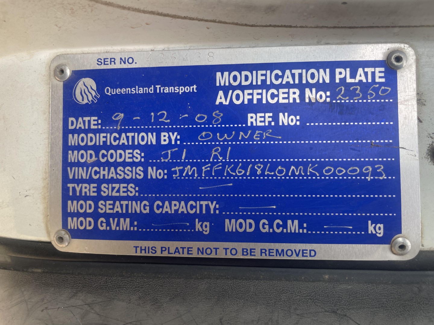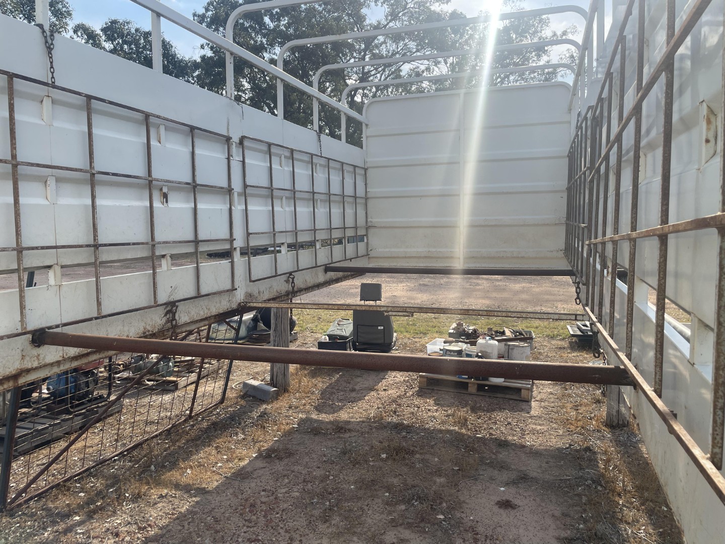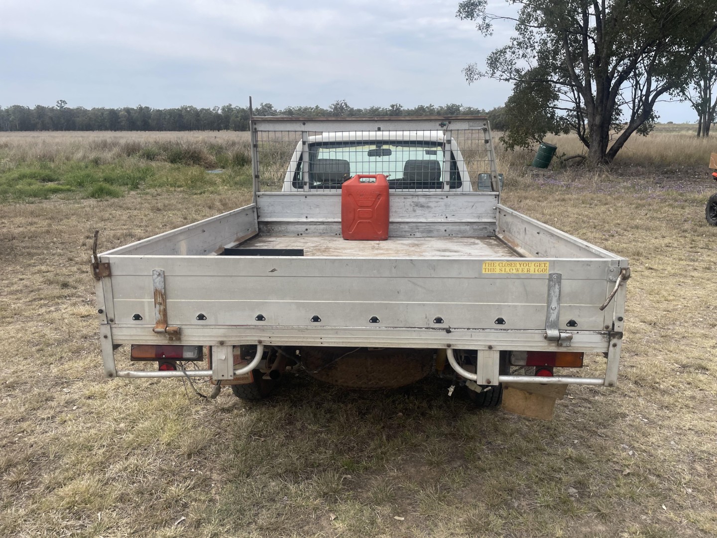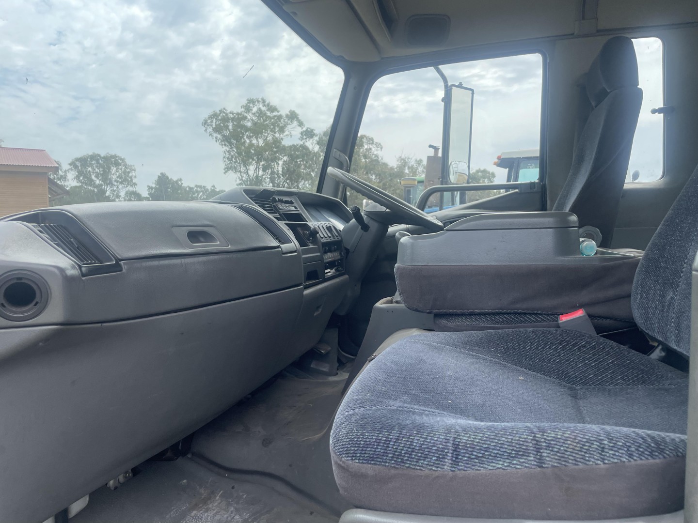 Lot 4. Mitsubishi FK 600 tray back truck with stock crate included, 03/2001 ,in good condition, model FK618LHRFAC, 285,000 kms, 12,000 GVM, steel tool box, Certificate of inspection will be current. Vin: JMFFK618L0MK00093.