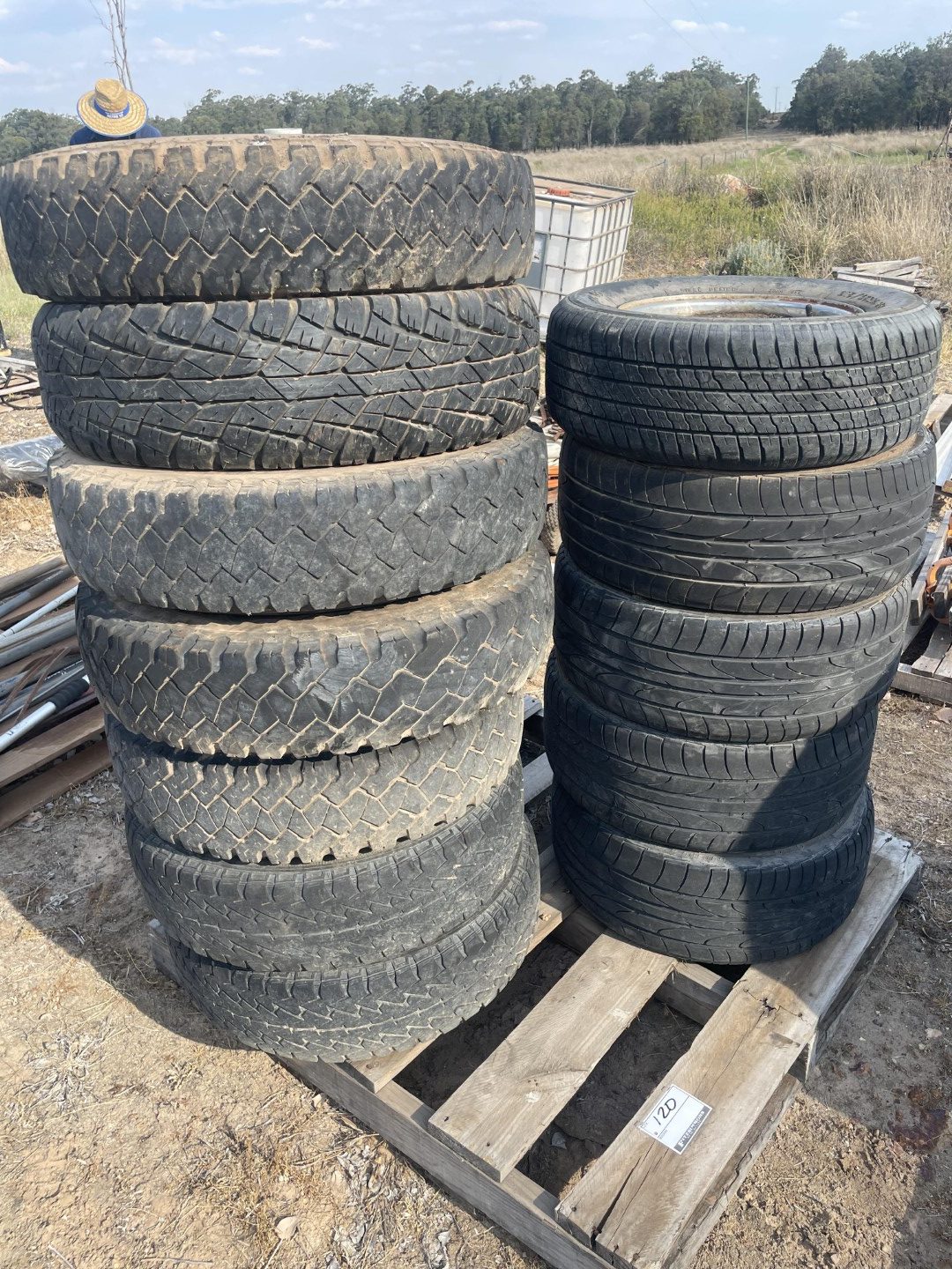 Lot 120. Sundry Tyres including some 7.50 -16 split rims – 4 x VE Commodore tyres and rims.