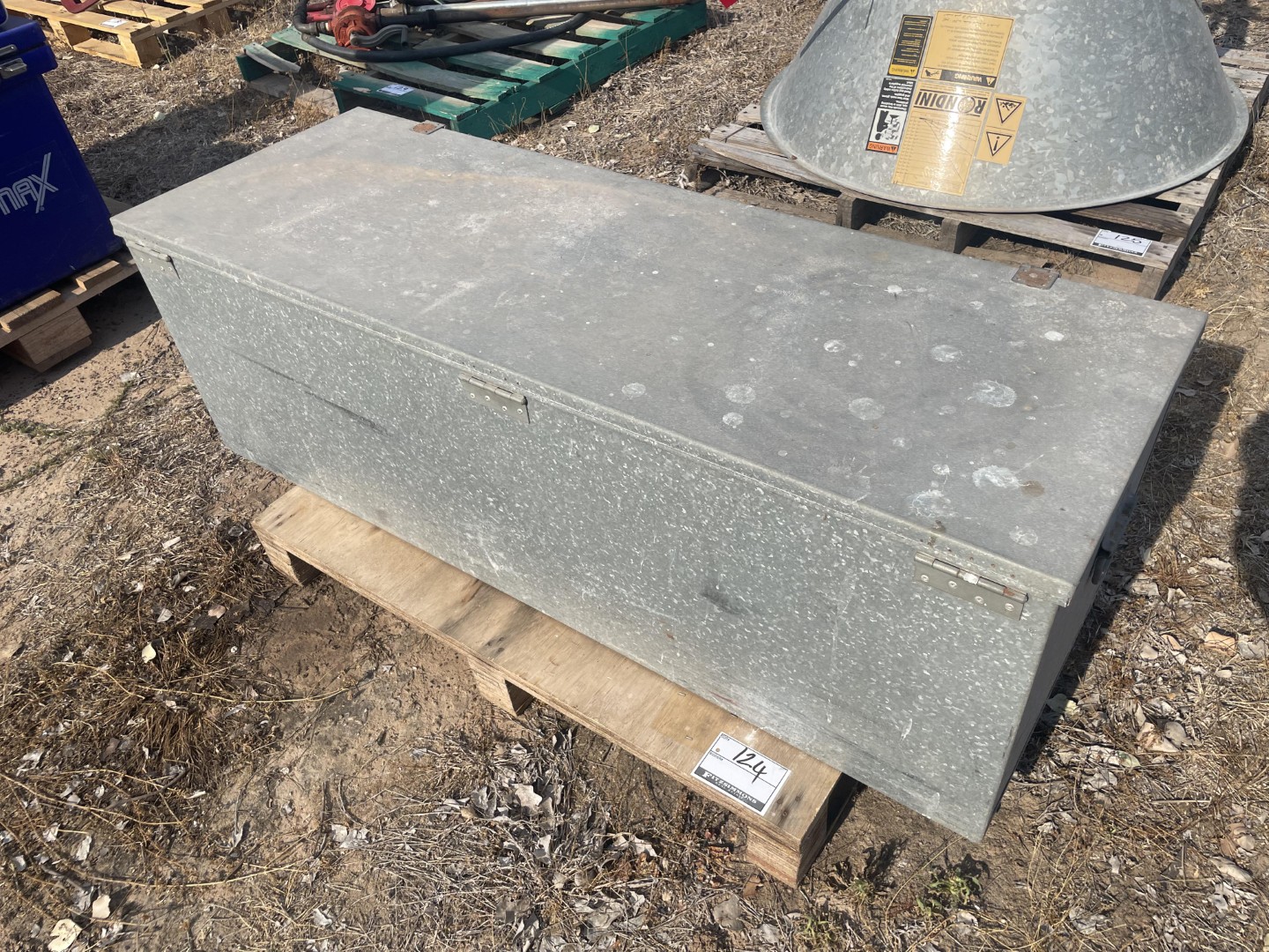 Lot 124. Large Steel box approx. 1.43m long x 490mm wide x 470mm high.