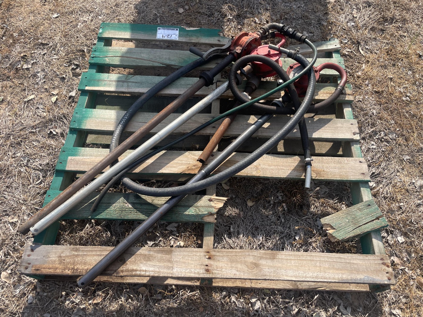 Lot 129. 3 x hand Fuel Pumps, condition unknown.
