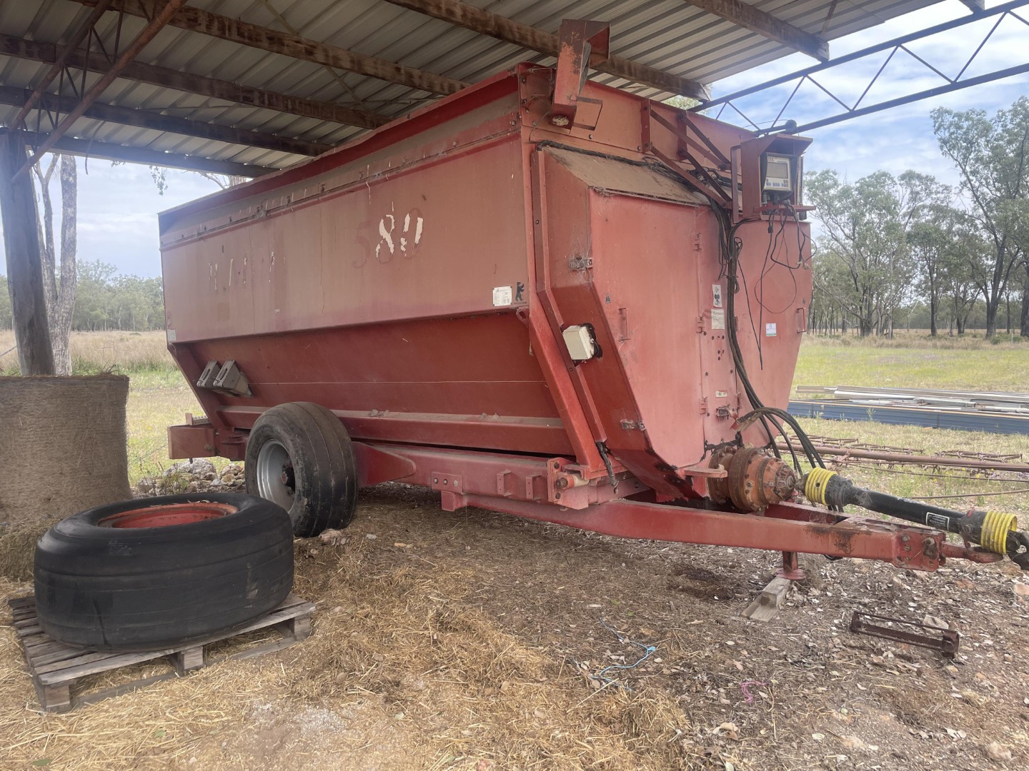 Lot 13. REMH Mixer Wagon, 2004 model, scales, conveyor unload, spare tyre and rim, spare tyre and tube, has been shedded Chassis No 12014.