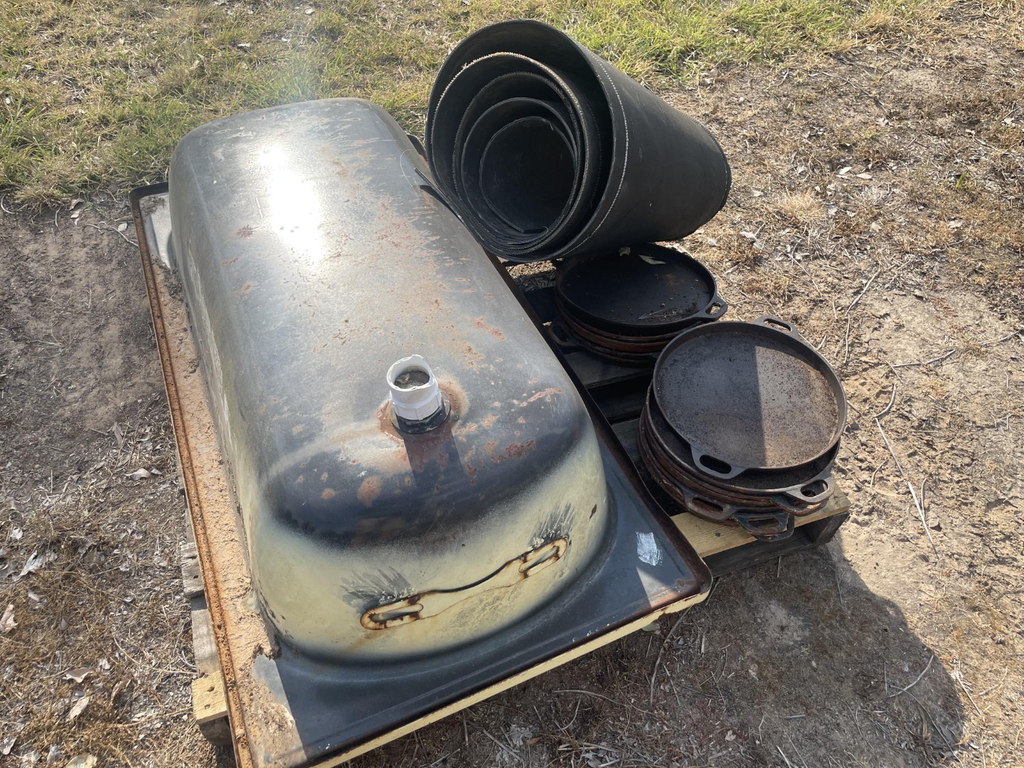 Lot 133. Steel Bath Tub, Rubber Belting, Qty Cast Plates.