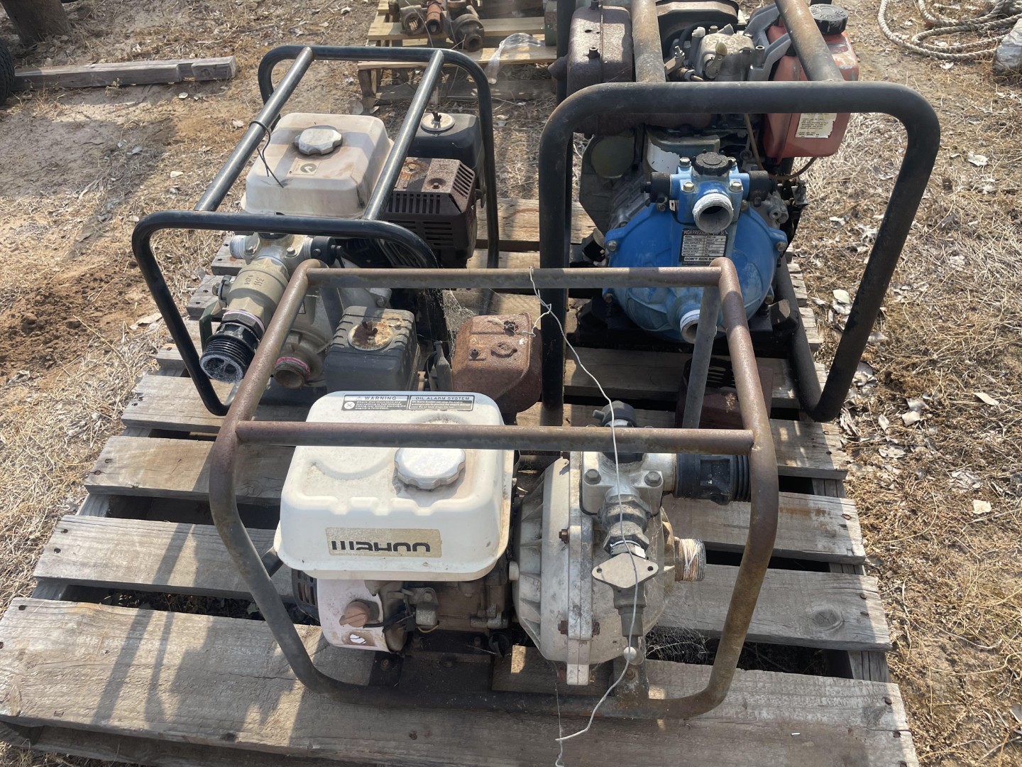 Lot 135. 3 x old Water Pumps not running sold as parts only, 2 x Scorpion and 1 x Honda.