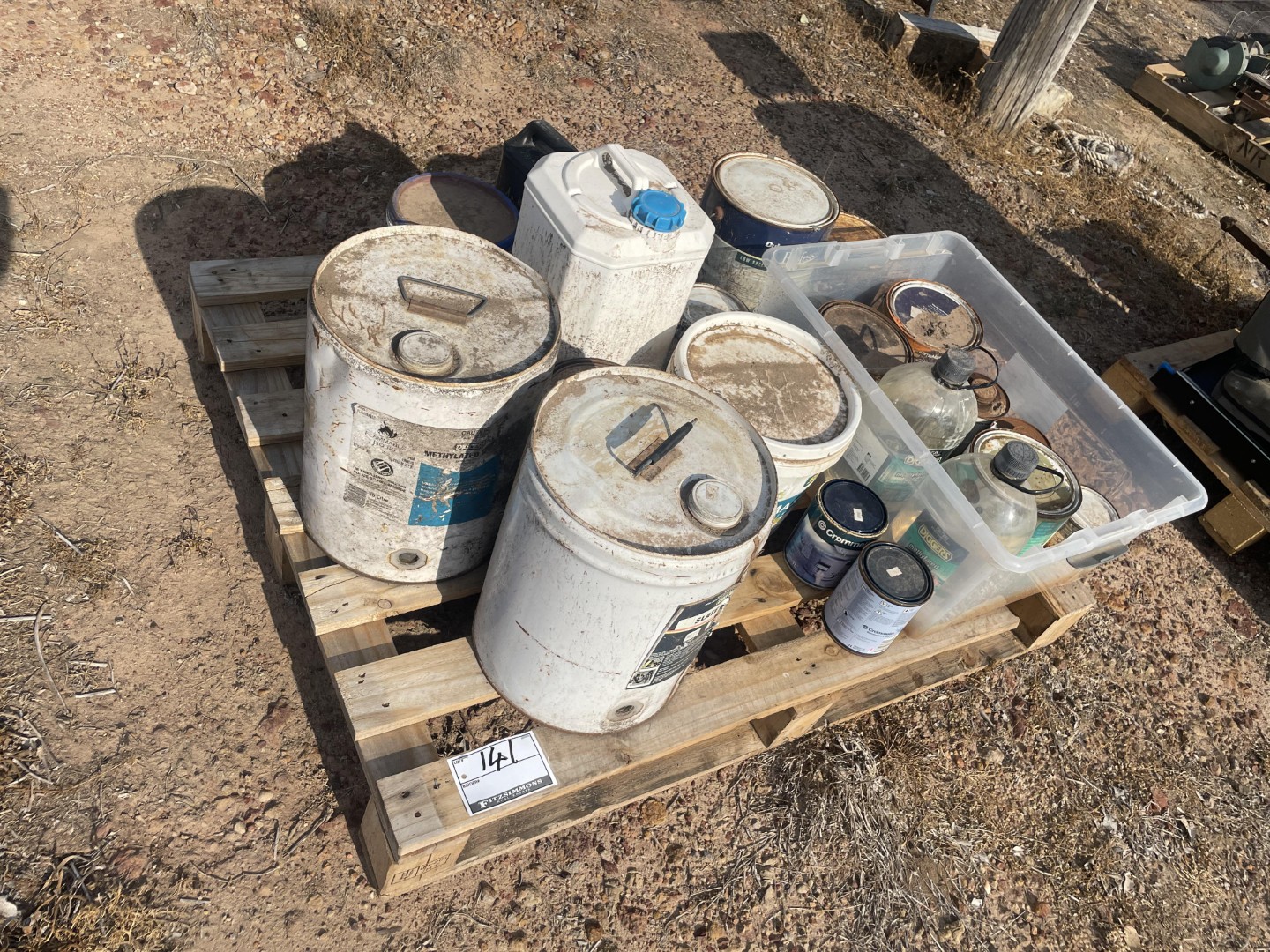 Lot 141. Qty Tins of Paint & Sundries sold as is where is. Inspection recommended.