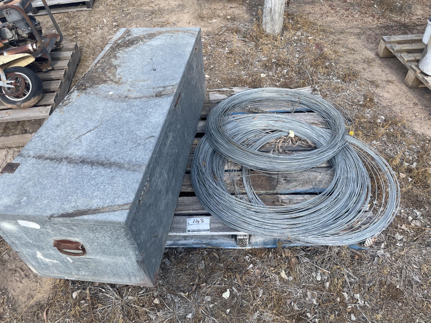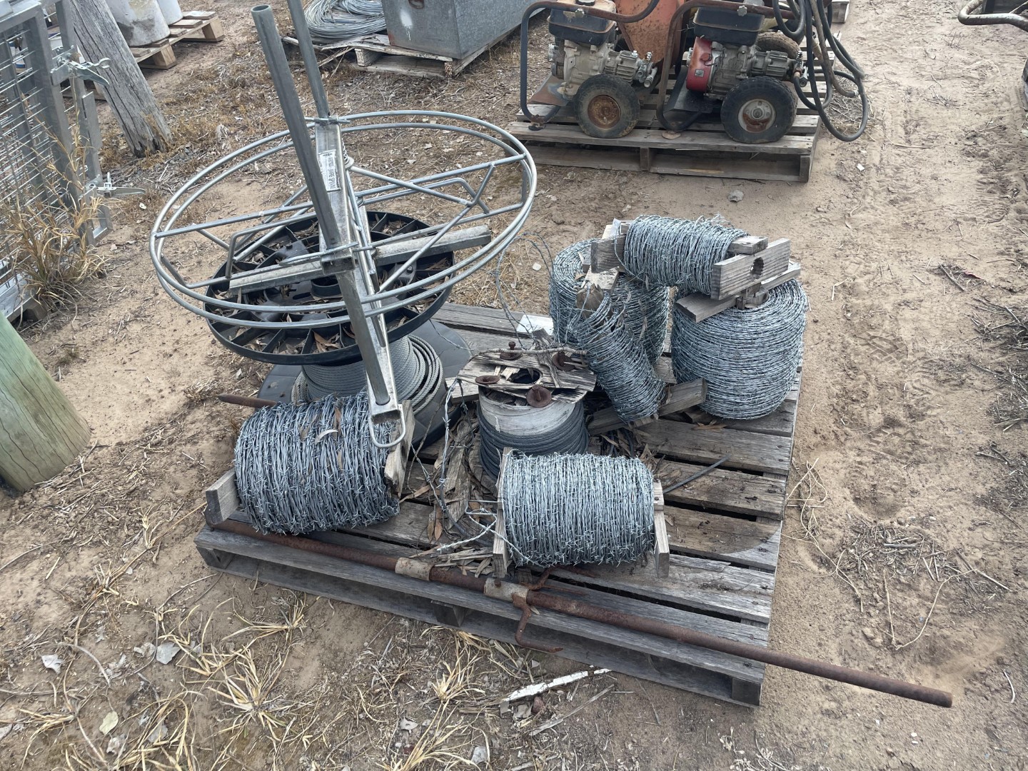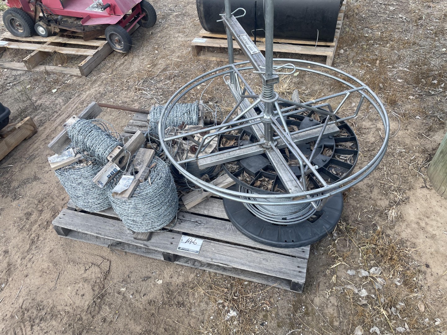 Lot 146. Steel Cable, Rolls of Barb wire, Wire spinner.