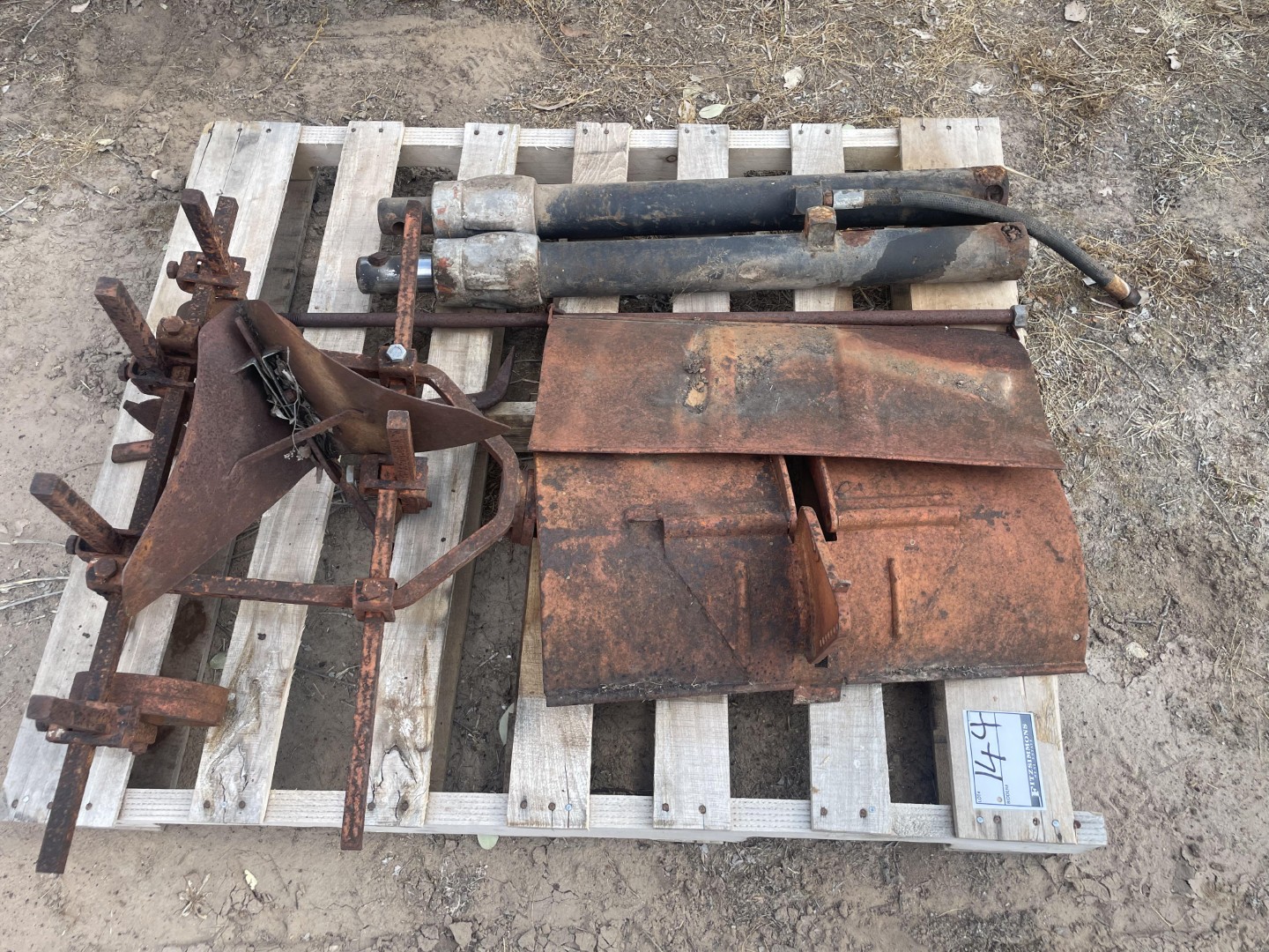 Lot 144. 2 x Hydraulic Rams (sold as is where is ,condition unknown parts only), Small Garden Cultivator, 2 x shields.