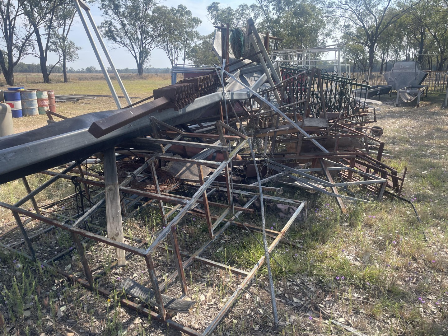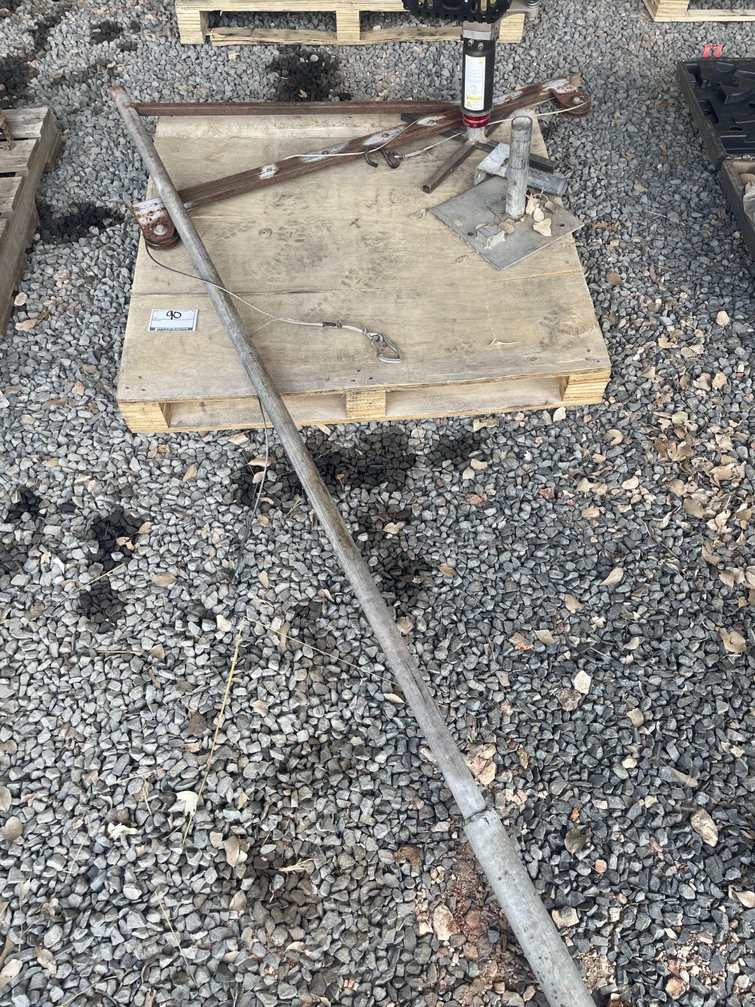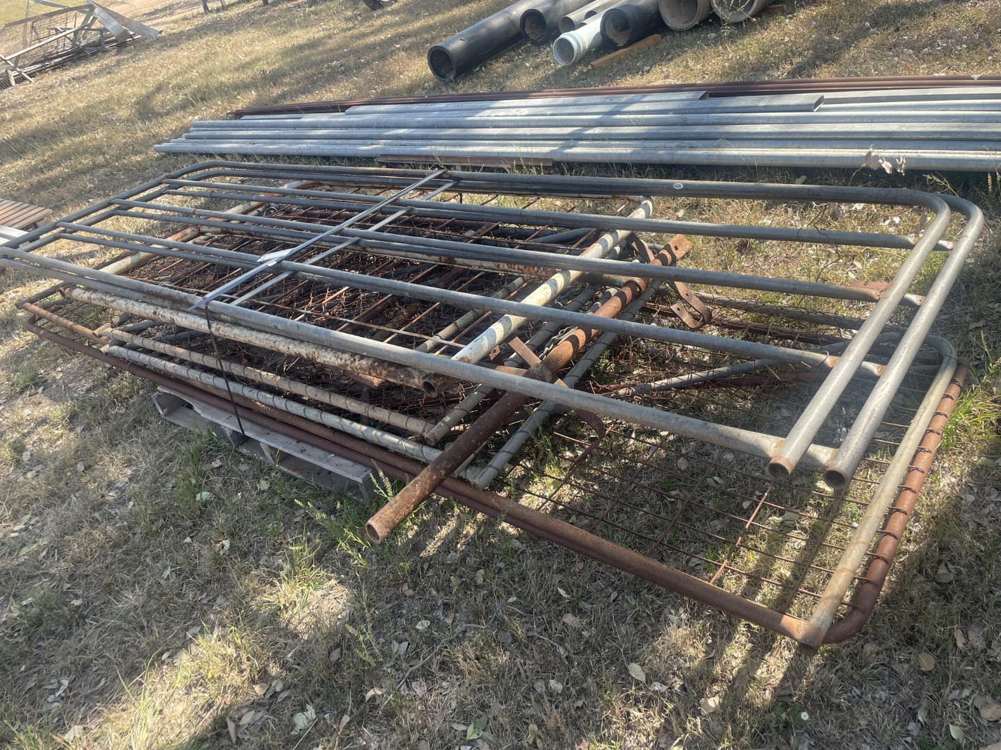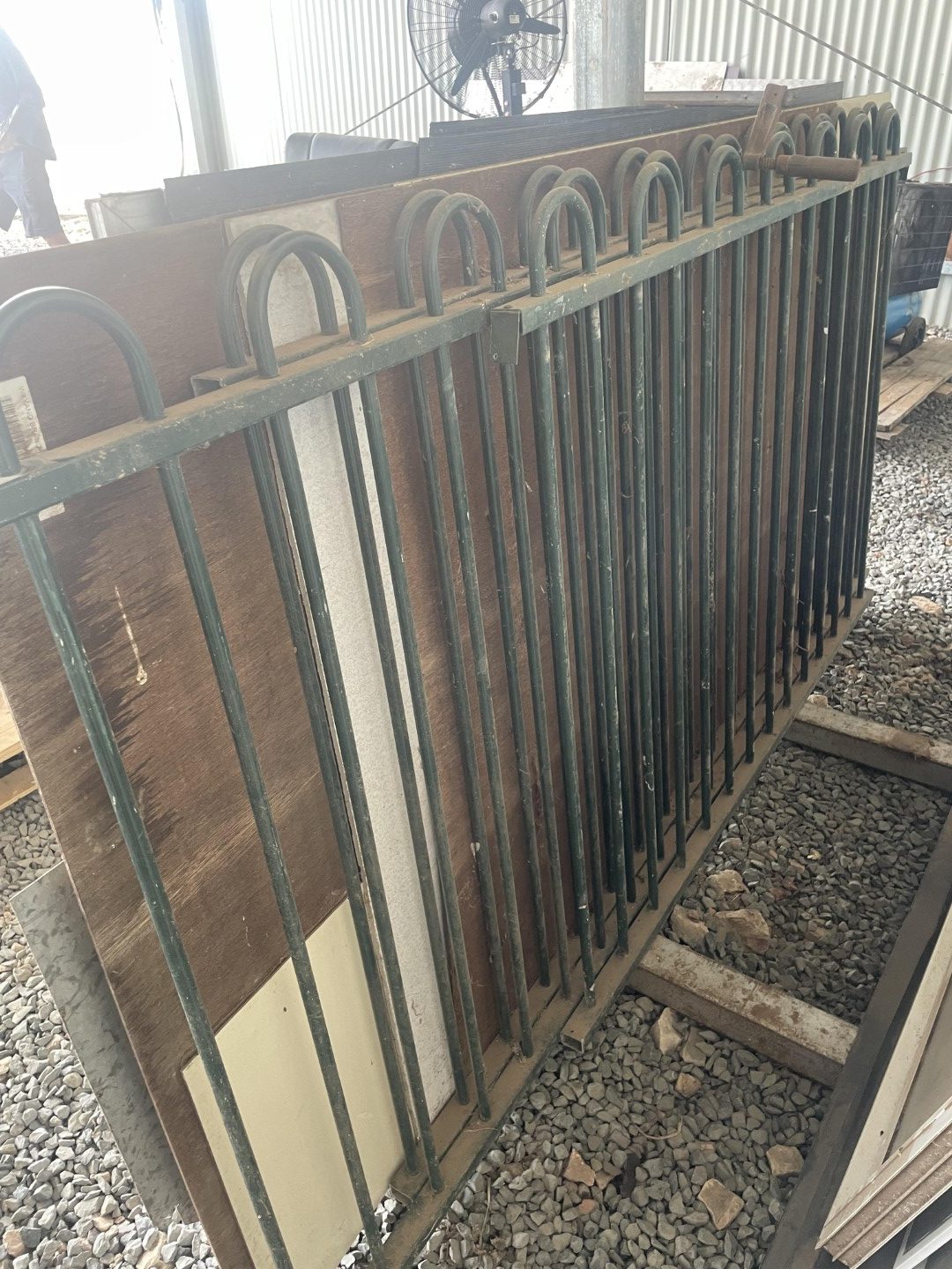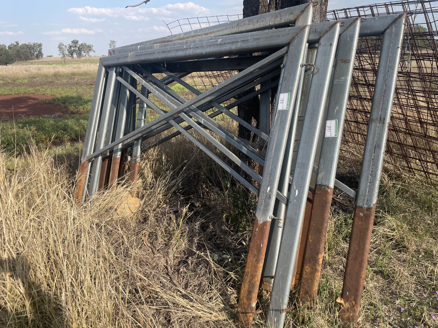 Lot 44. 10 x lengths Galv pipe 60mm OD with blue ends – 3 pieces oval cattle rail – SHS 1@ 75 x 75 x 5.4m (green end) – sundry reo – sundry black steel stock panel.