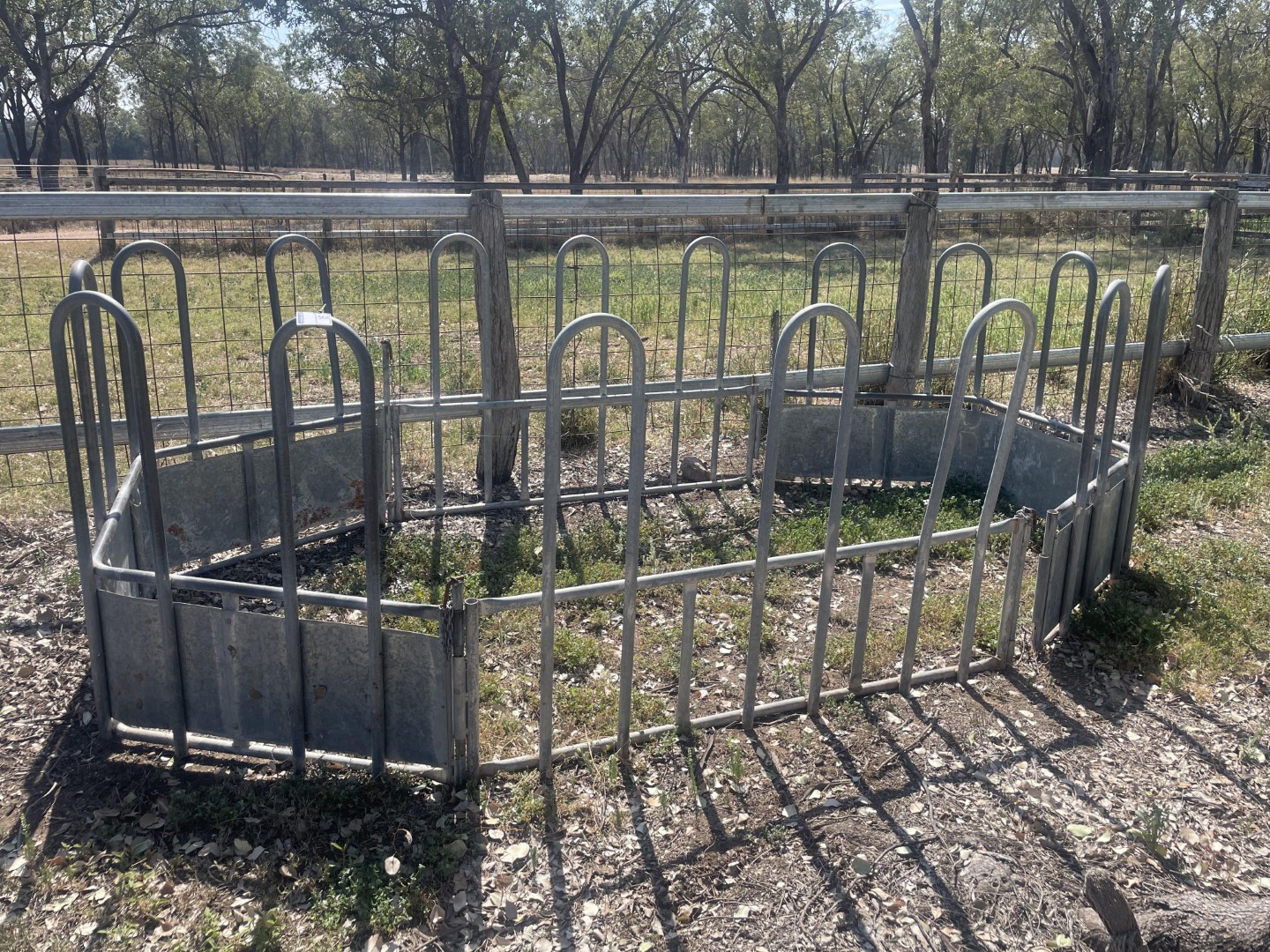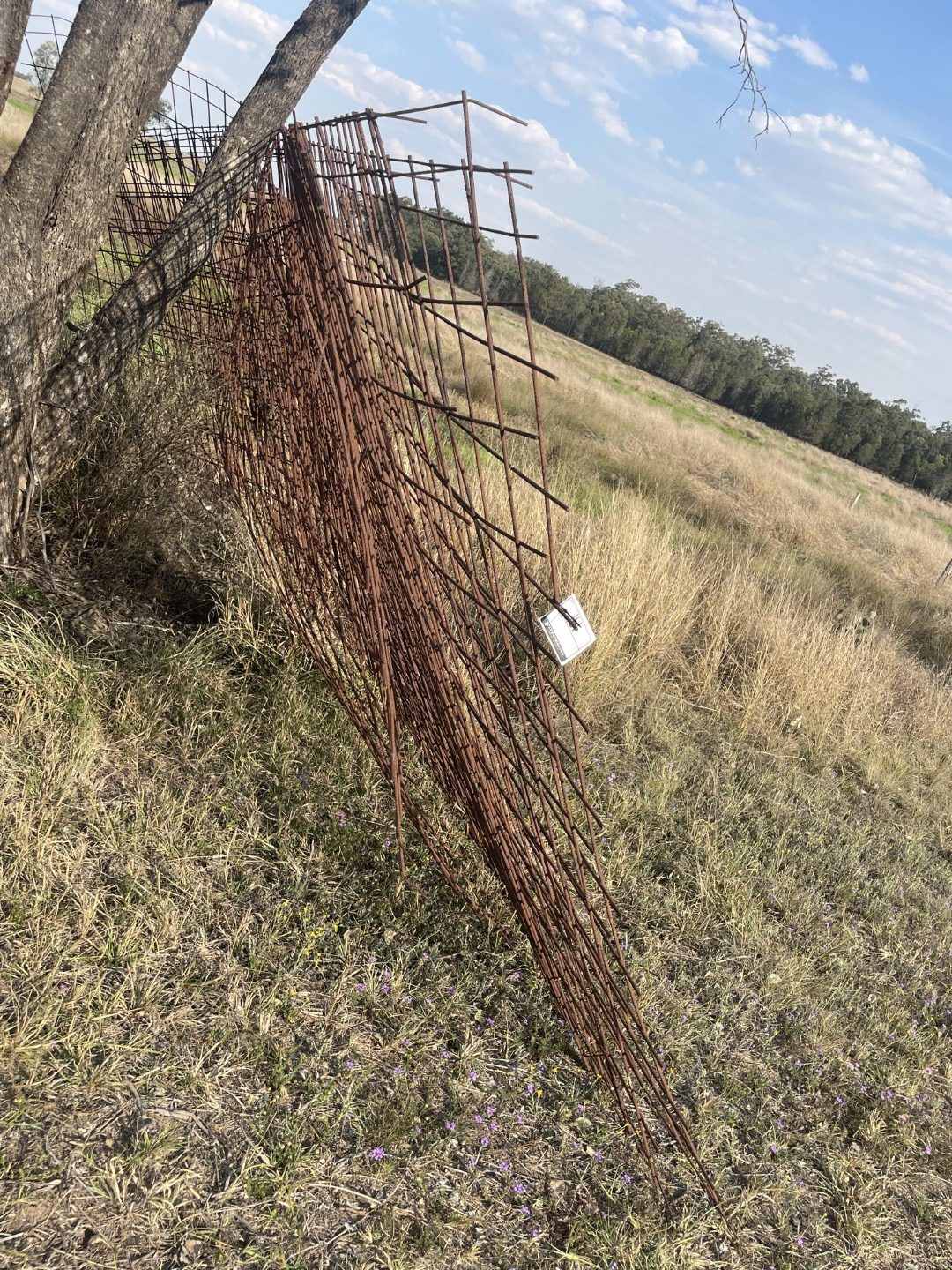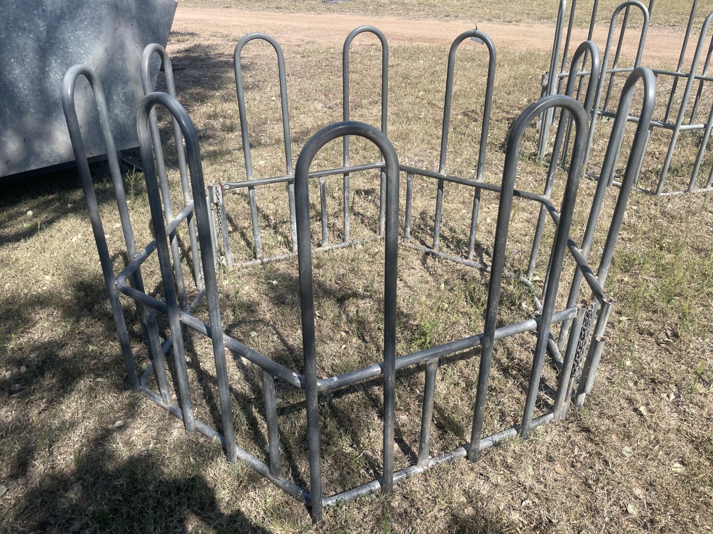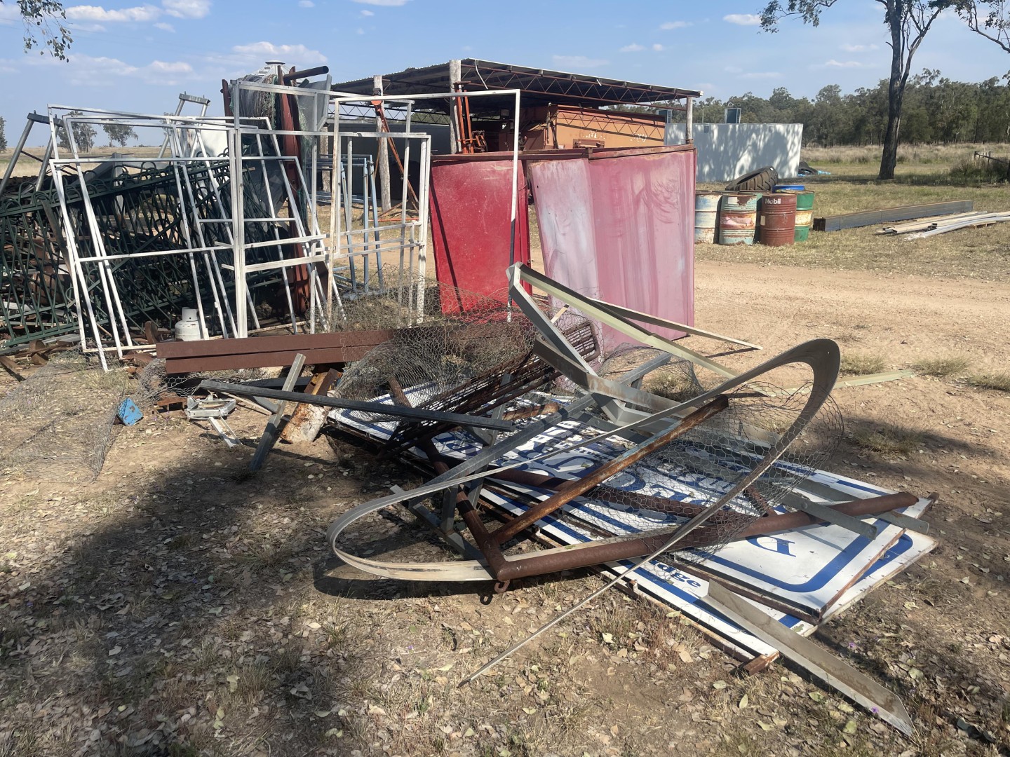 Lot 44. 10 x lengths Galv pipe 60mm OD with blue ends – 3 pieces oval cattle rail – SHS 1@ 75 x 75 x 5.4m (green end) – sundry reo – sundry black steel stock panel.