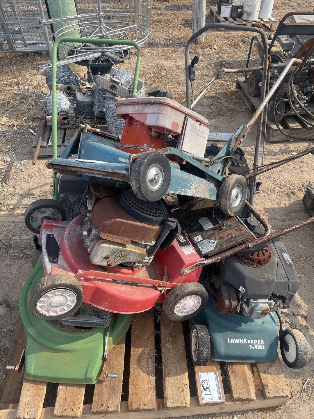 Lot 153. Qty Old Push Mowers (sold as is where is ,condition unknown, parts only).