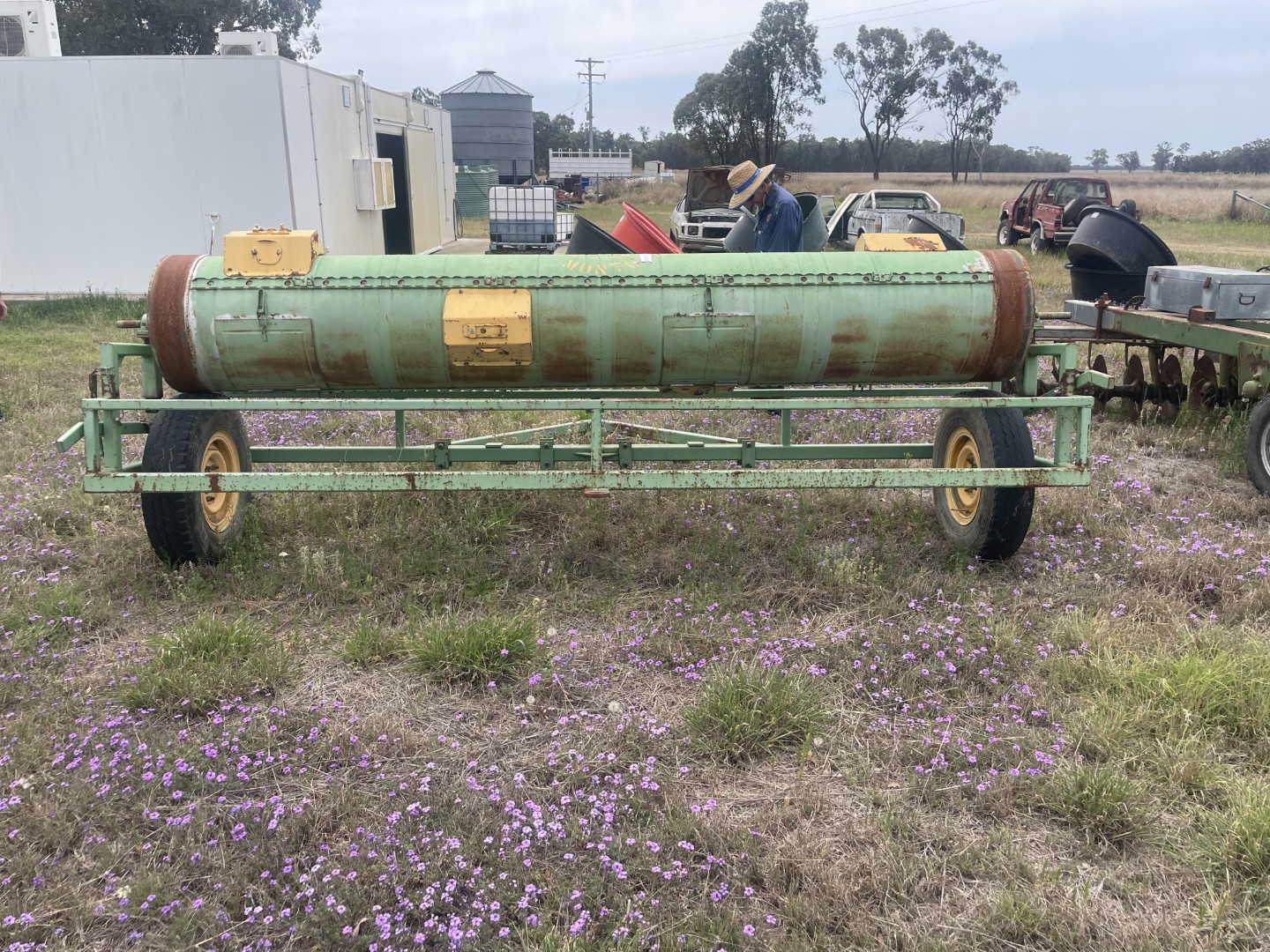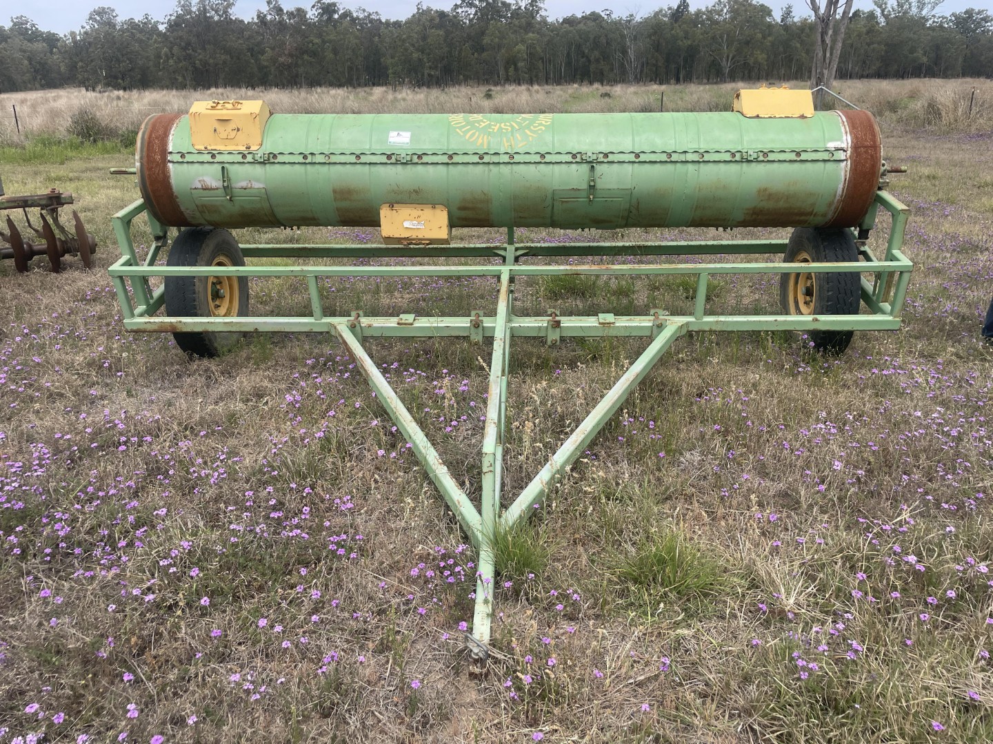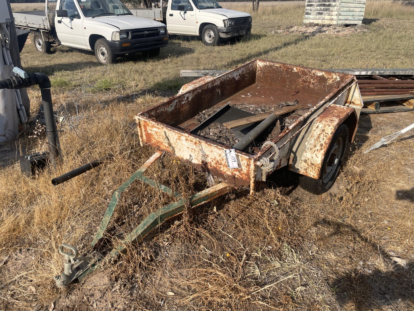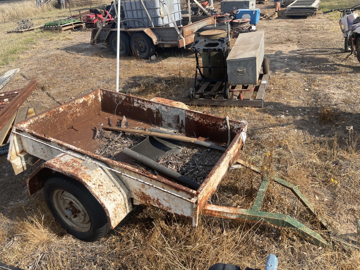 Lot 156. Tandem trailer set up as firefighting unit, approx. 3m x 1.5m, some rust, 1000 litre shuttle, Honda GX 160 pump goes well.