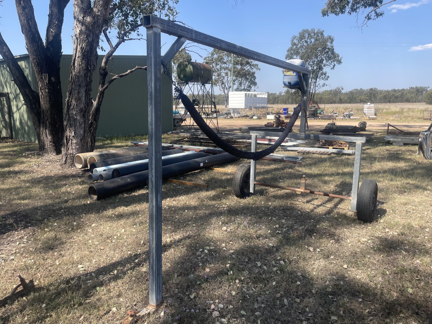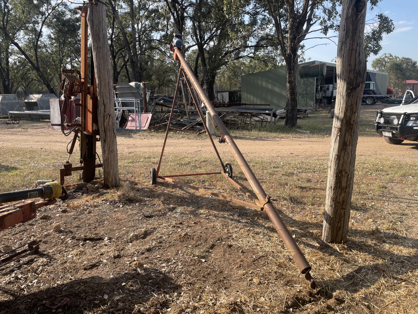 Lot 165. Pencil auger approx. 6 m long x 100mm barrel, electric motor, been shedded, condition unknown but believed to run, inspection recommended.