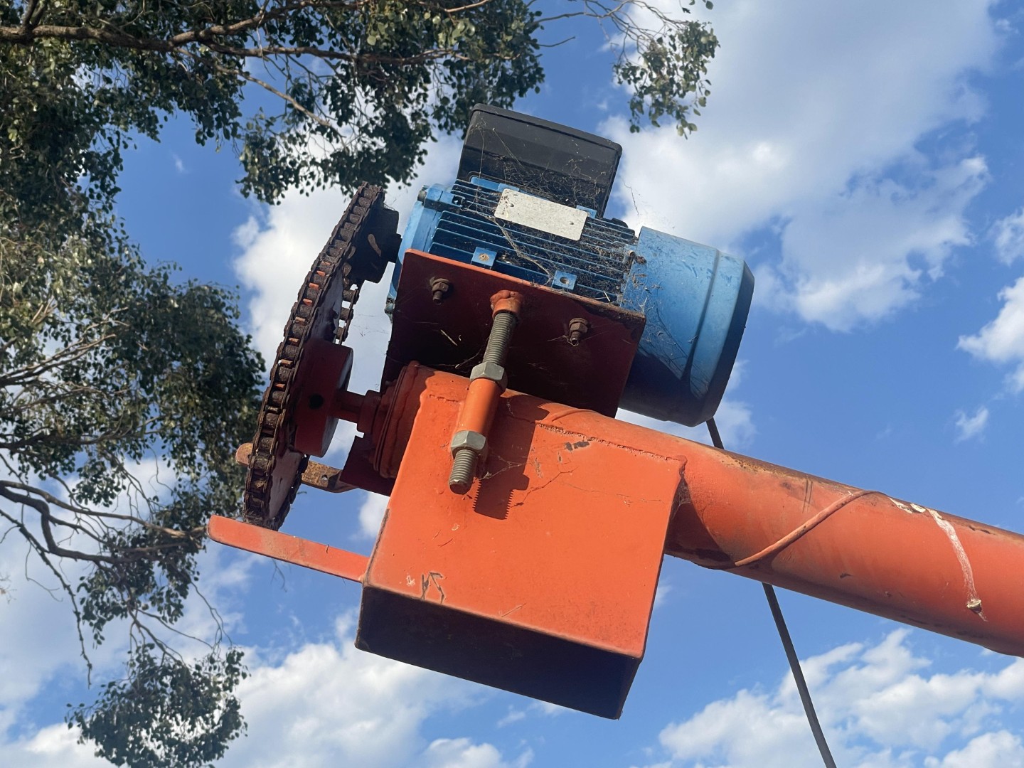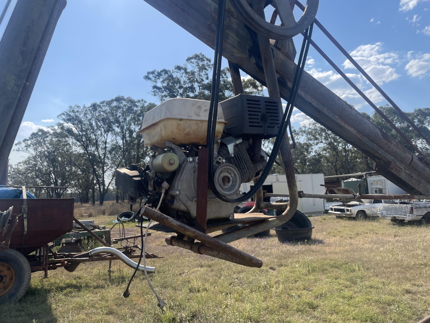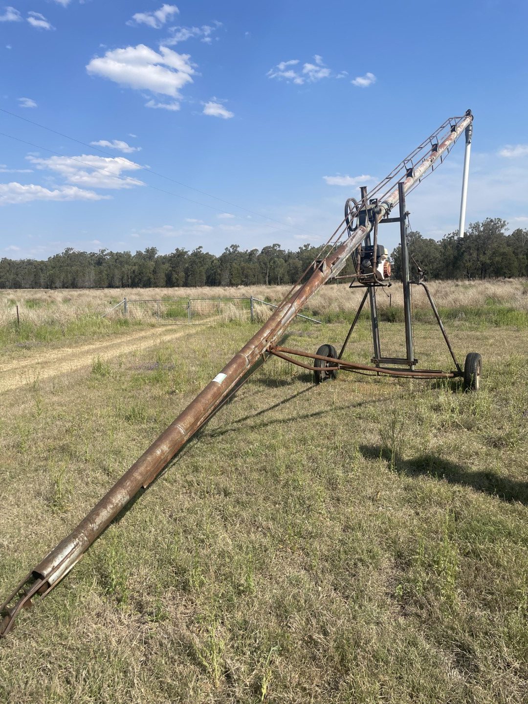 Lot 74. Auger approx. 38’ long x 5’’, has engine but has not been used for years (inspection recommended).