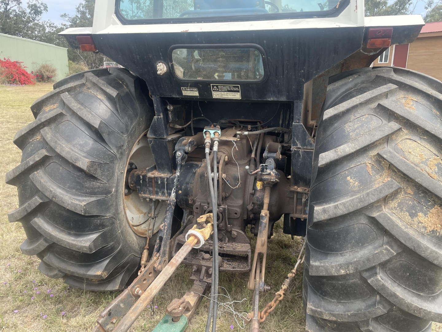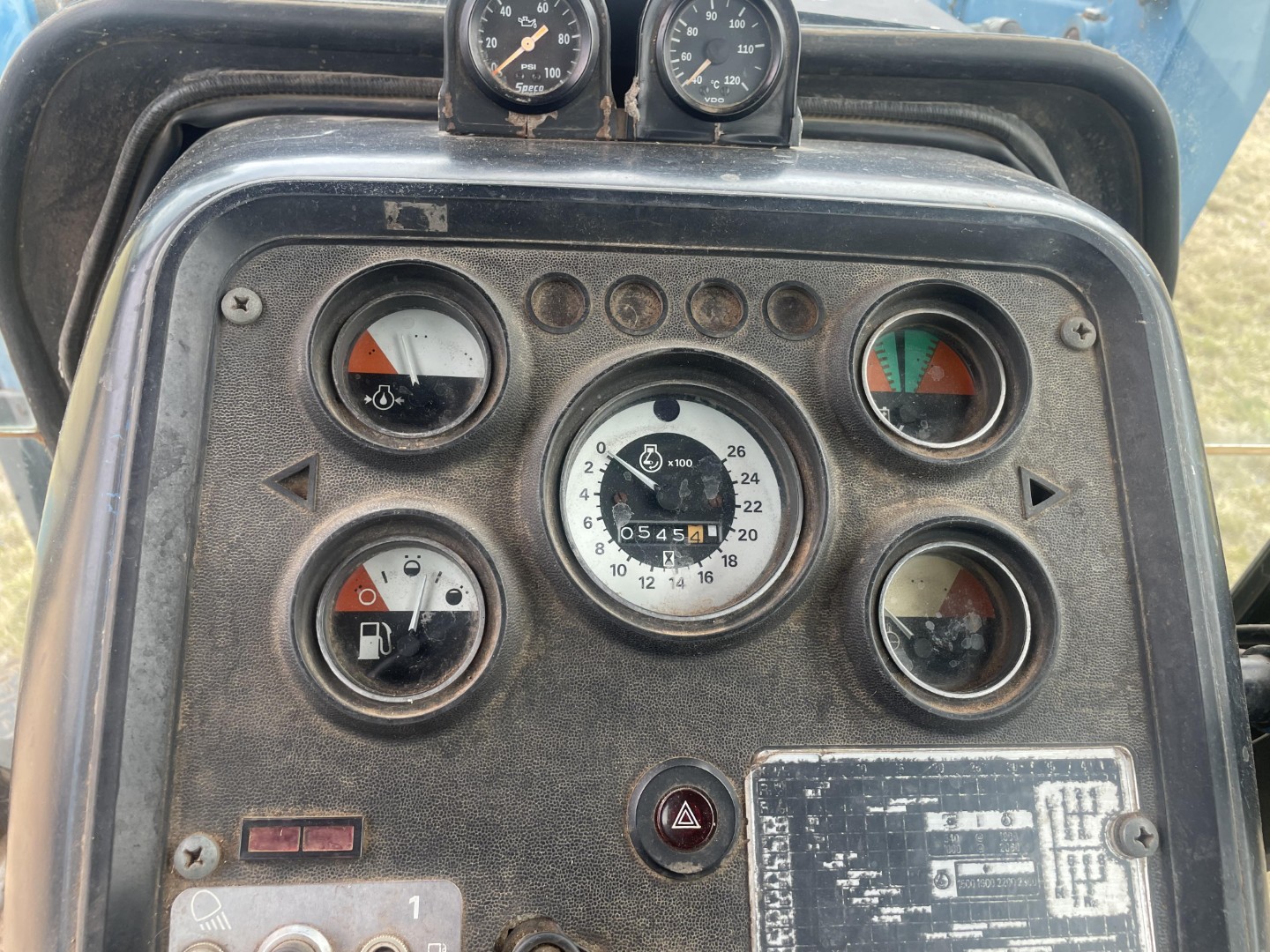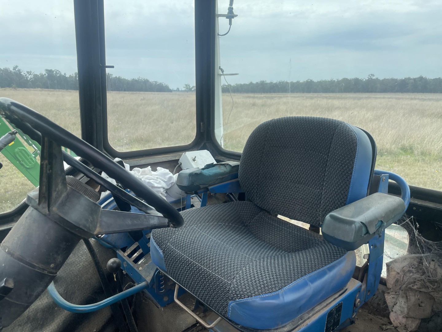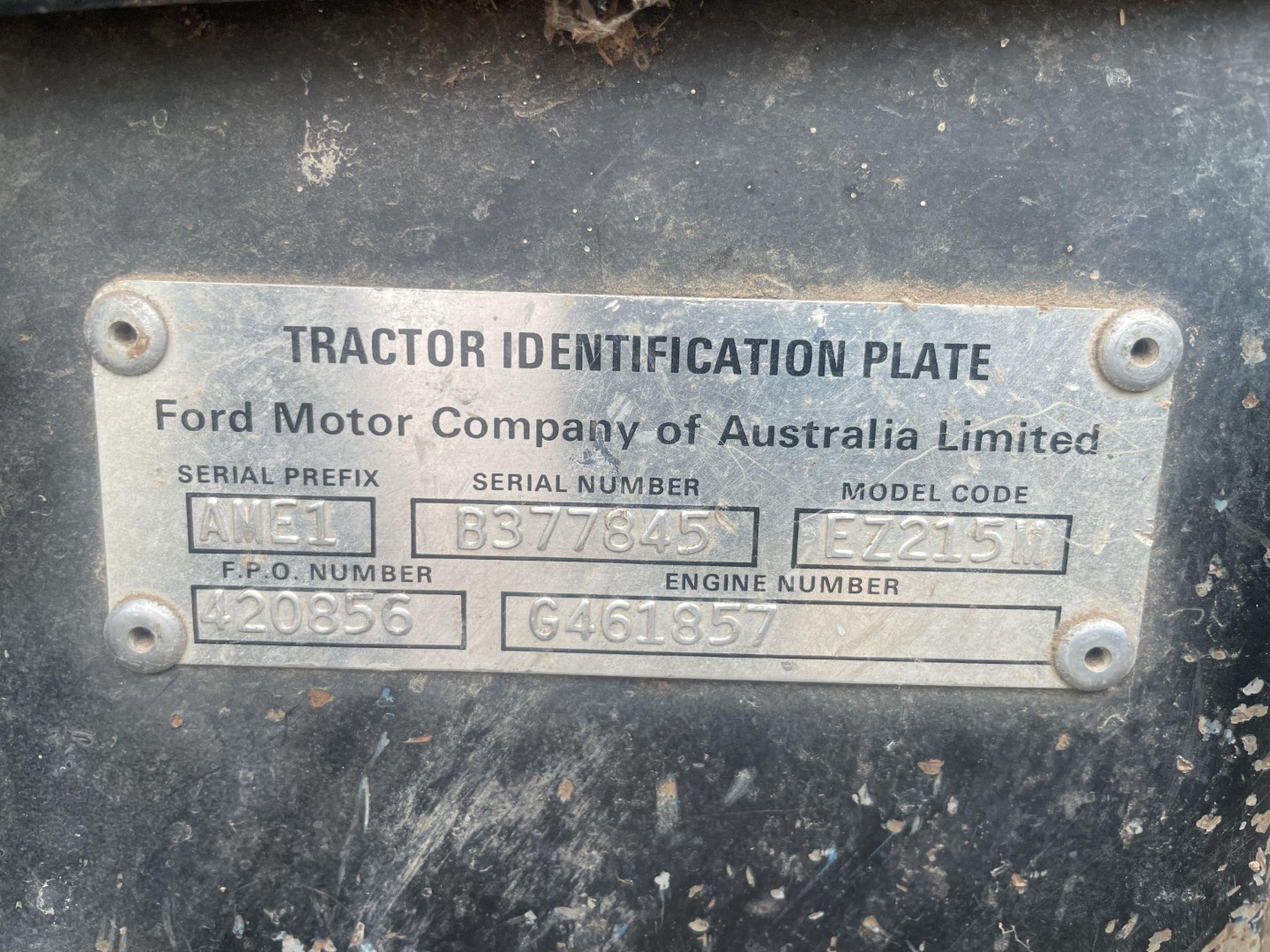 Lot 2. Ford 8401 Tractor, air cond. cab, good rubber, 3PL, indicating 10,545 hours, hay spears and GP bucket. Serial No: B377845.
