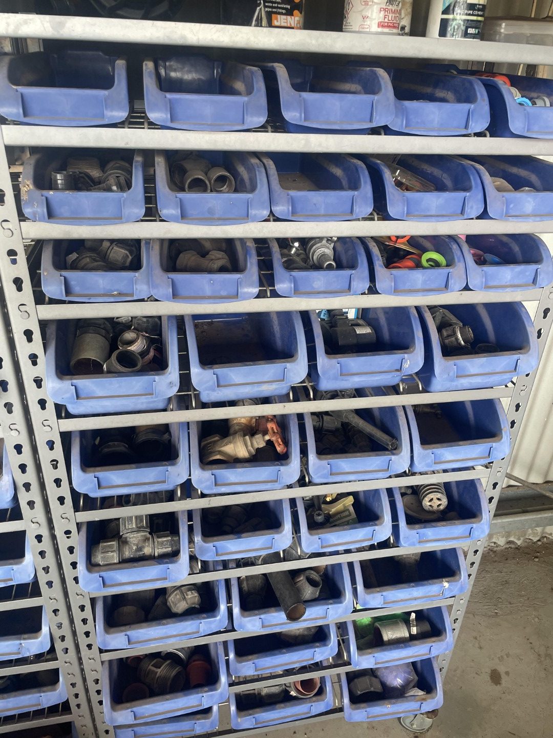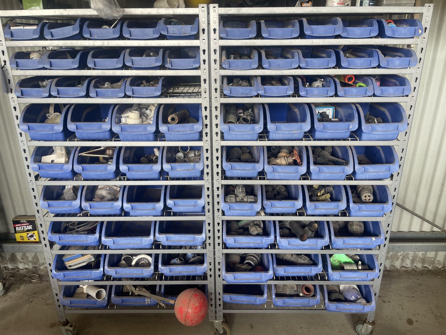 Lot 24. Storage Unit with plastic containers containing various parts and fittings.