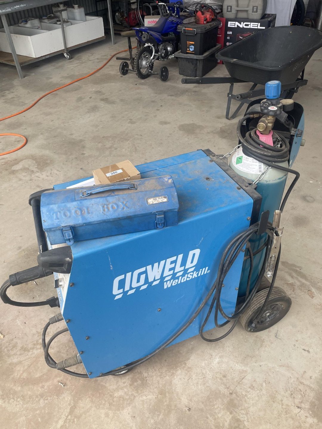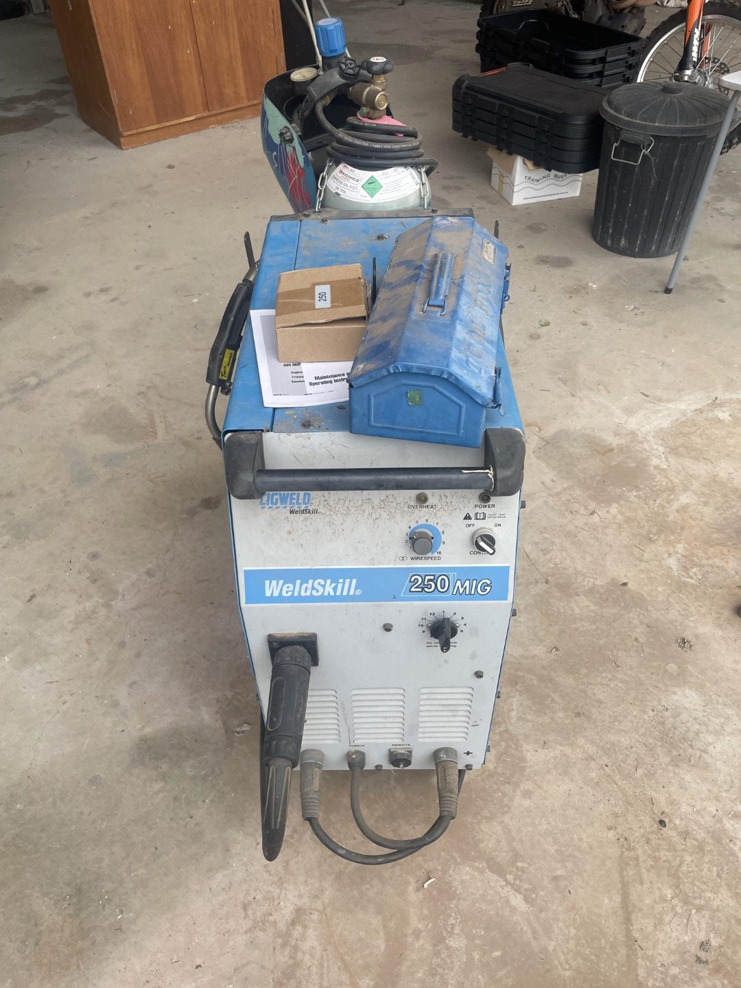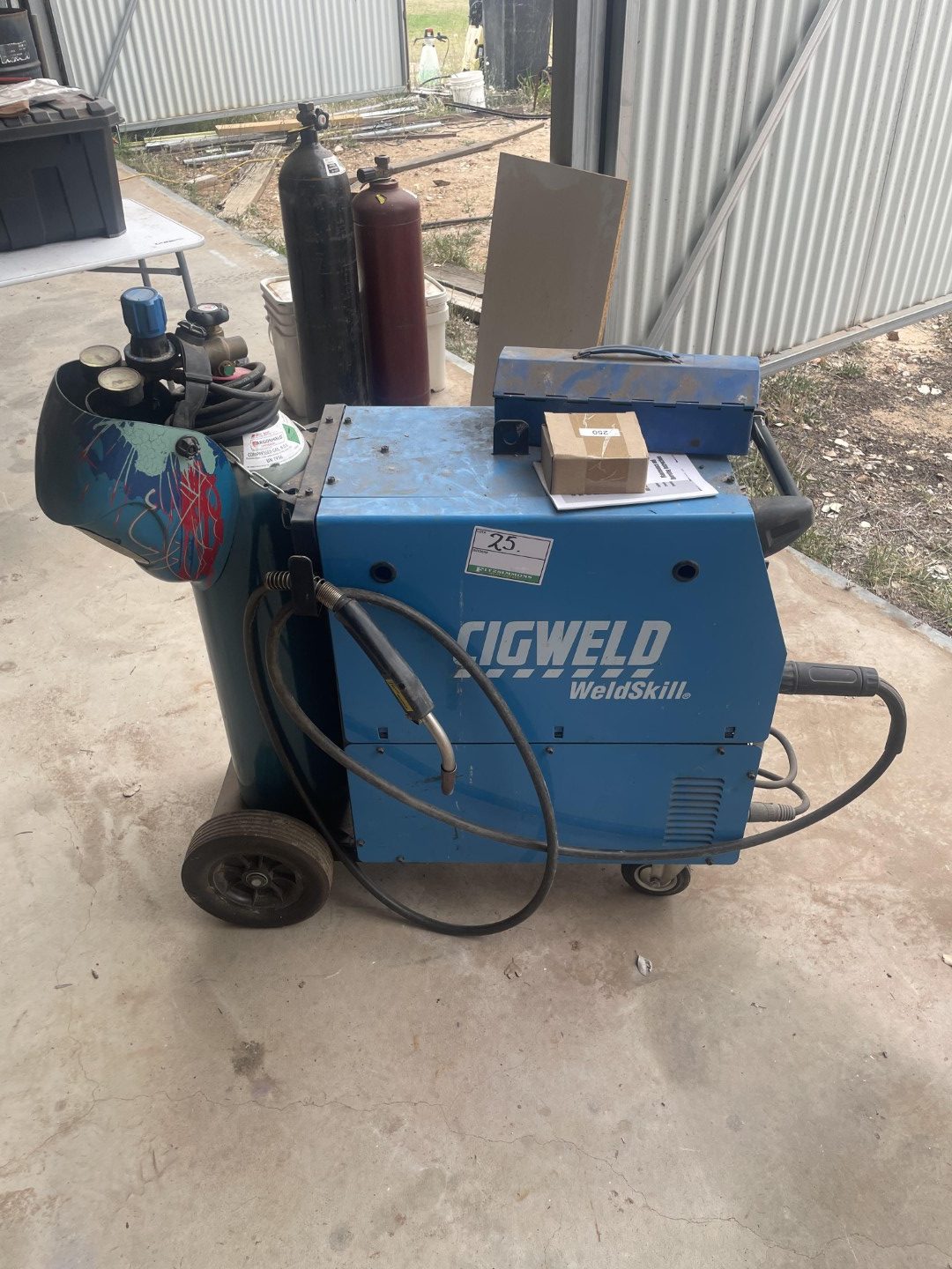 Lot 25. Cig weld 250amp Mig welder, 15amp single phase, working condition, gas bottle not included.