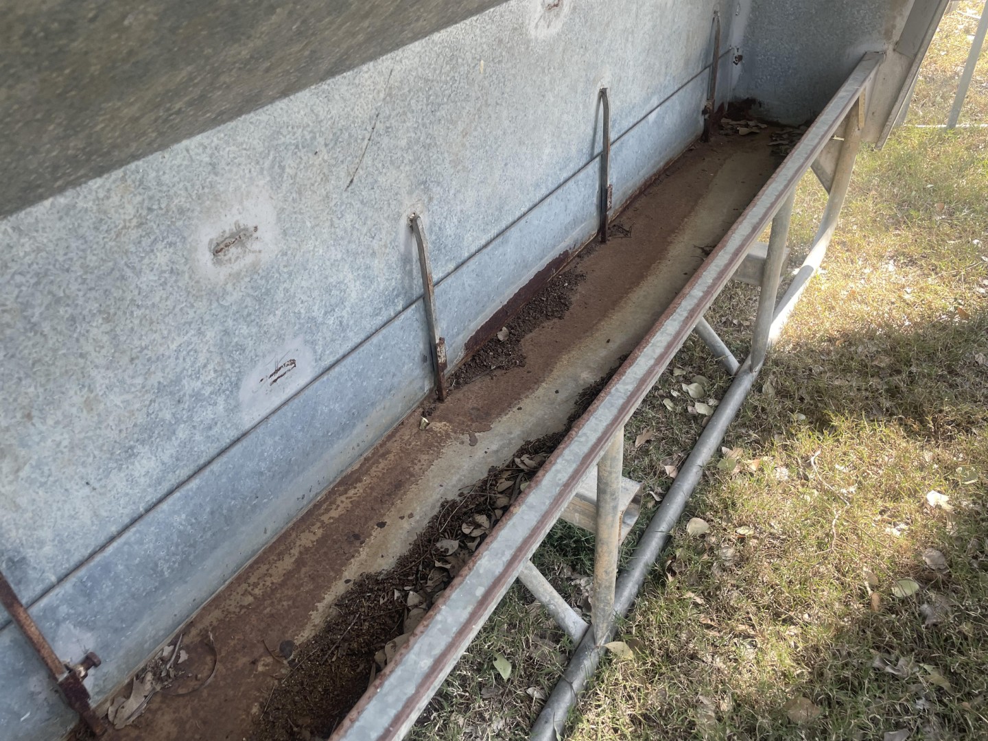 Lot 39. Approx. 6 m x .8 m wide stock trough, poly sheeting floor.