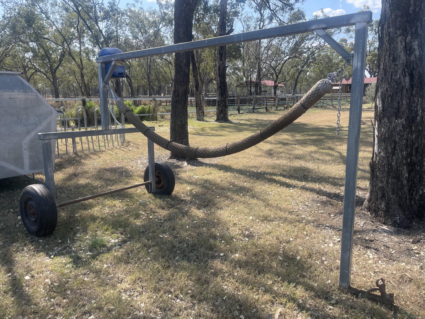 Lot 37. Mobile cattle buffalo fly back rub, with back rub and drip tank.