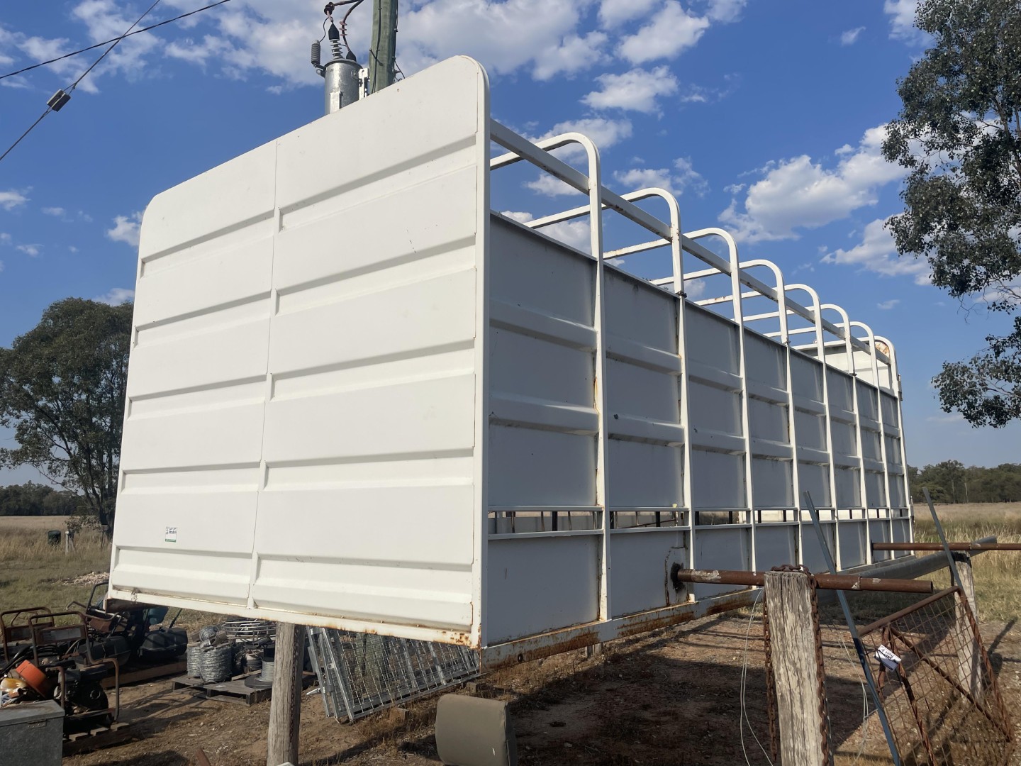 Lot 40. Approx. 6 m x .8 m wide stock trough, poly sheeting floor.