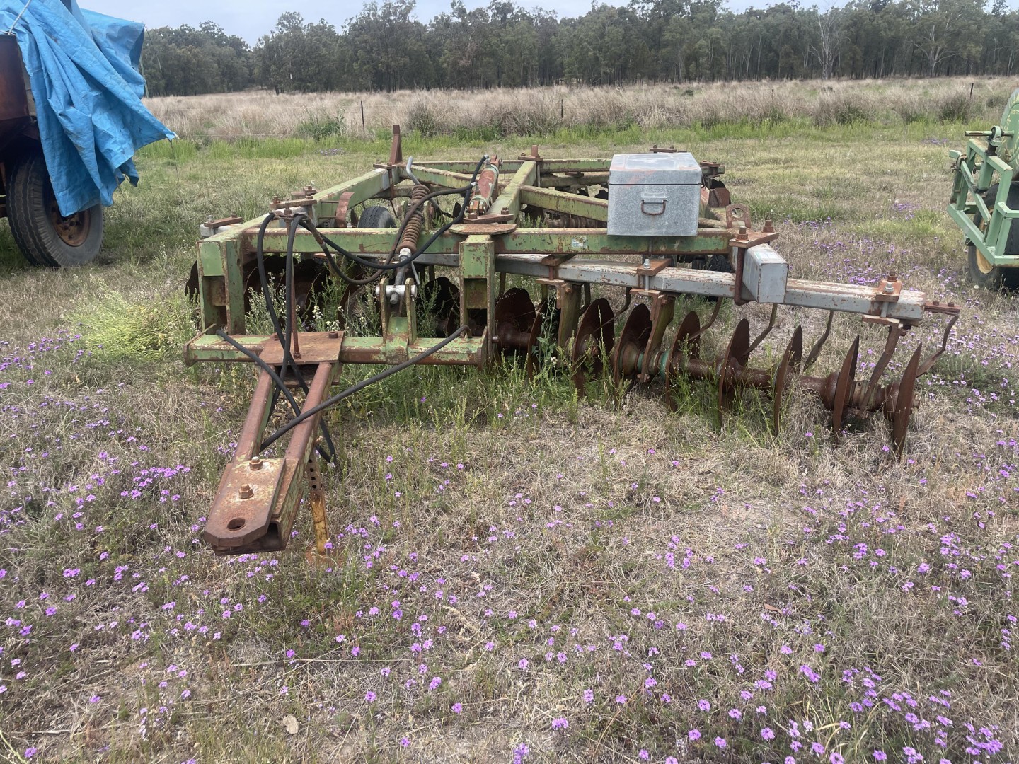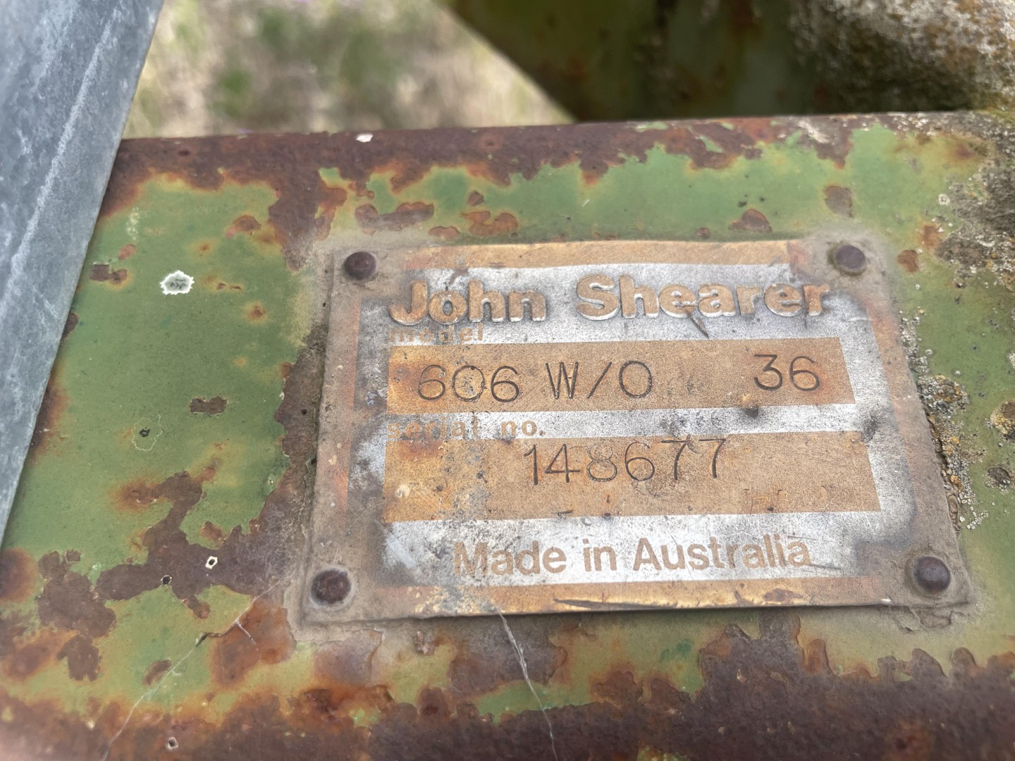 Lot 5. John Shearer 606- 36 plate offset disc plough. Hyd lift, serial 148677 model 606W1036.