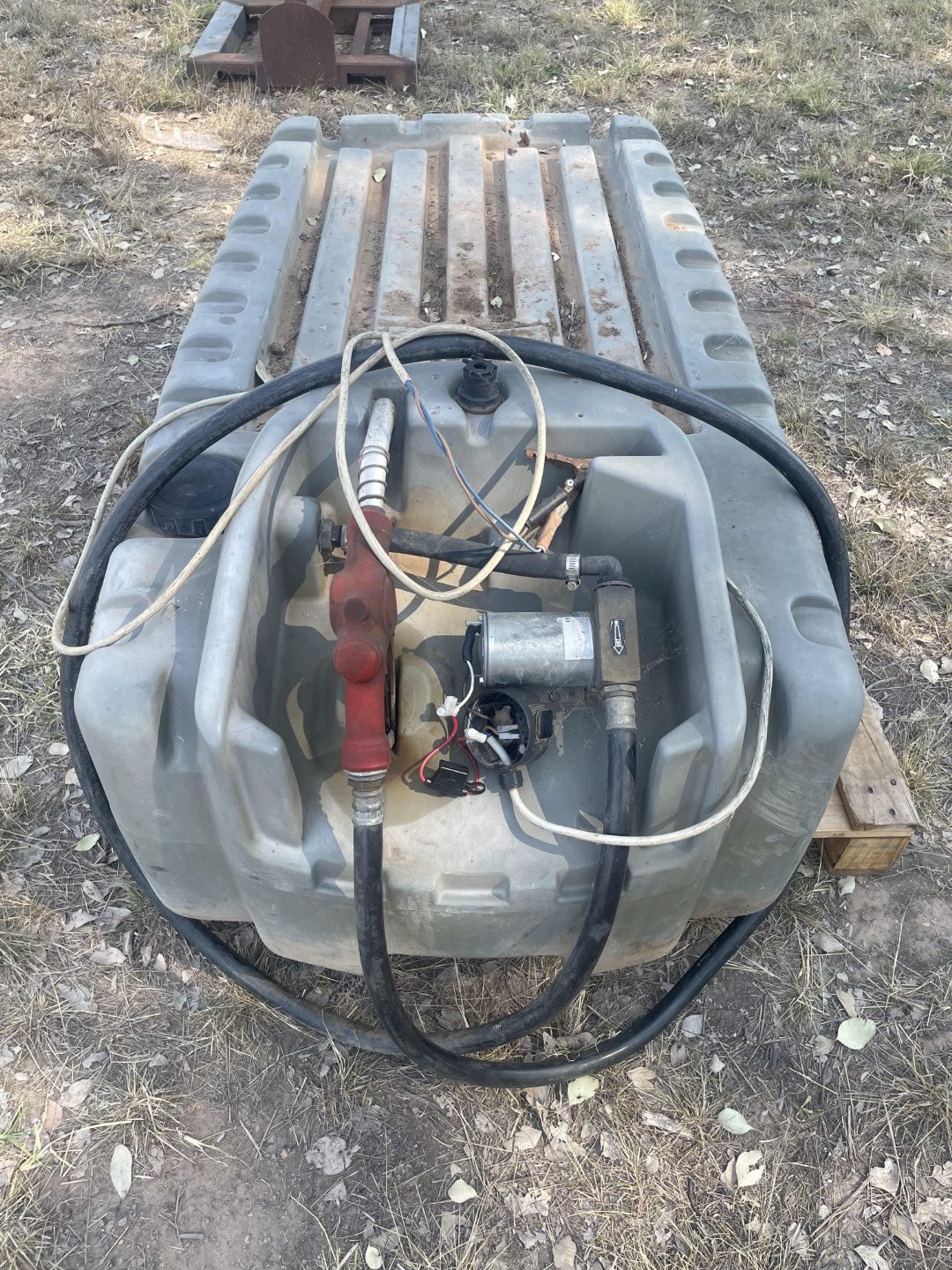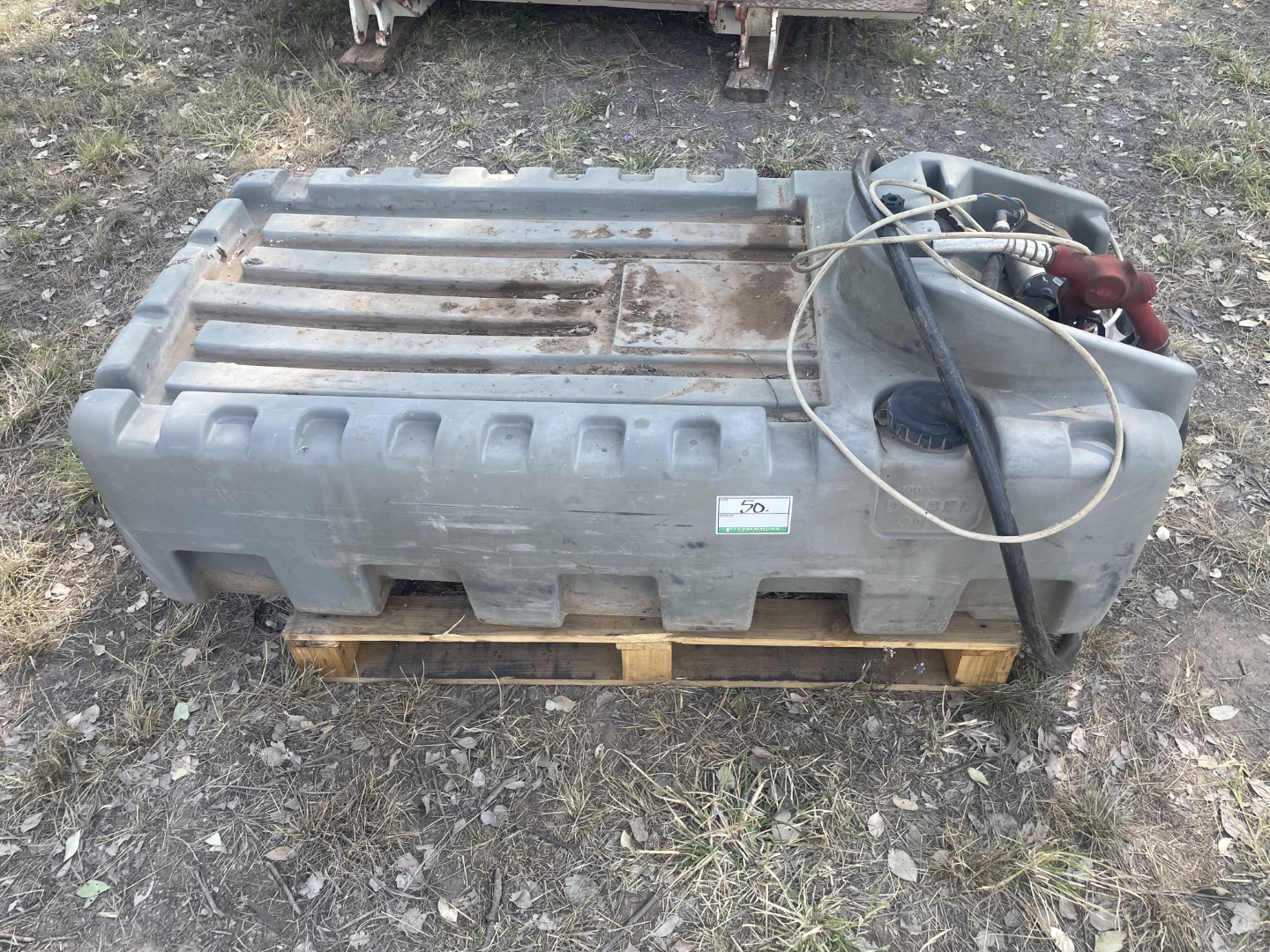 Lot 50. Poly diesel fuel tank, 400litre with 12volt pump and hose, working condition.