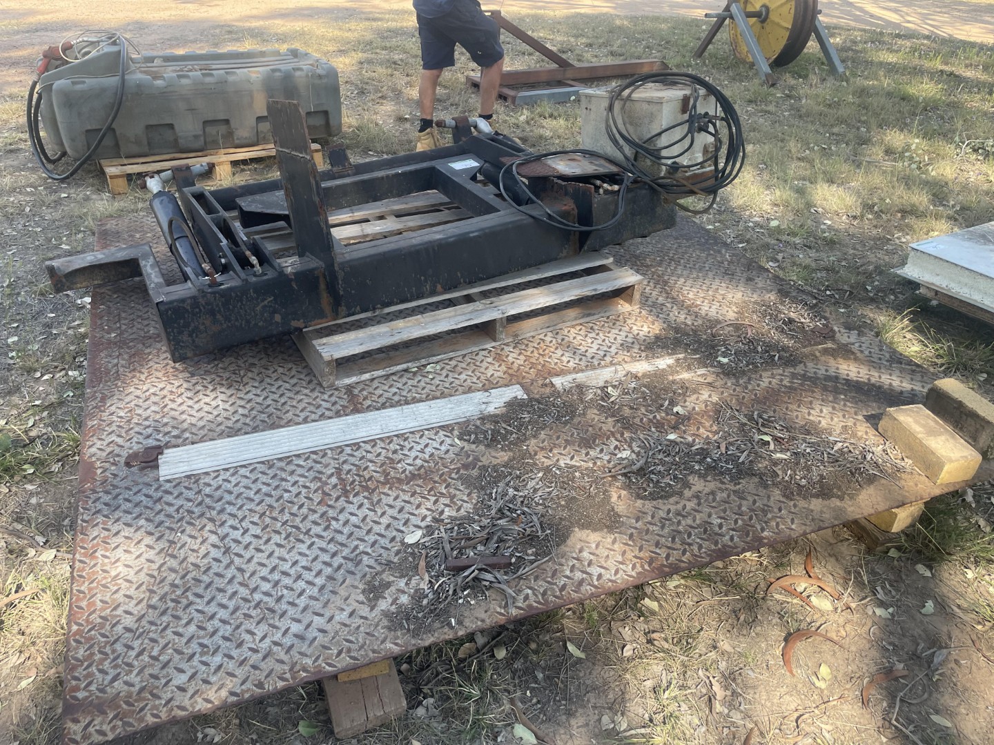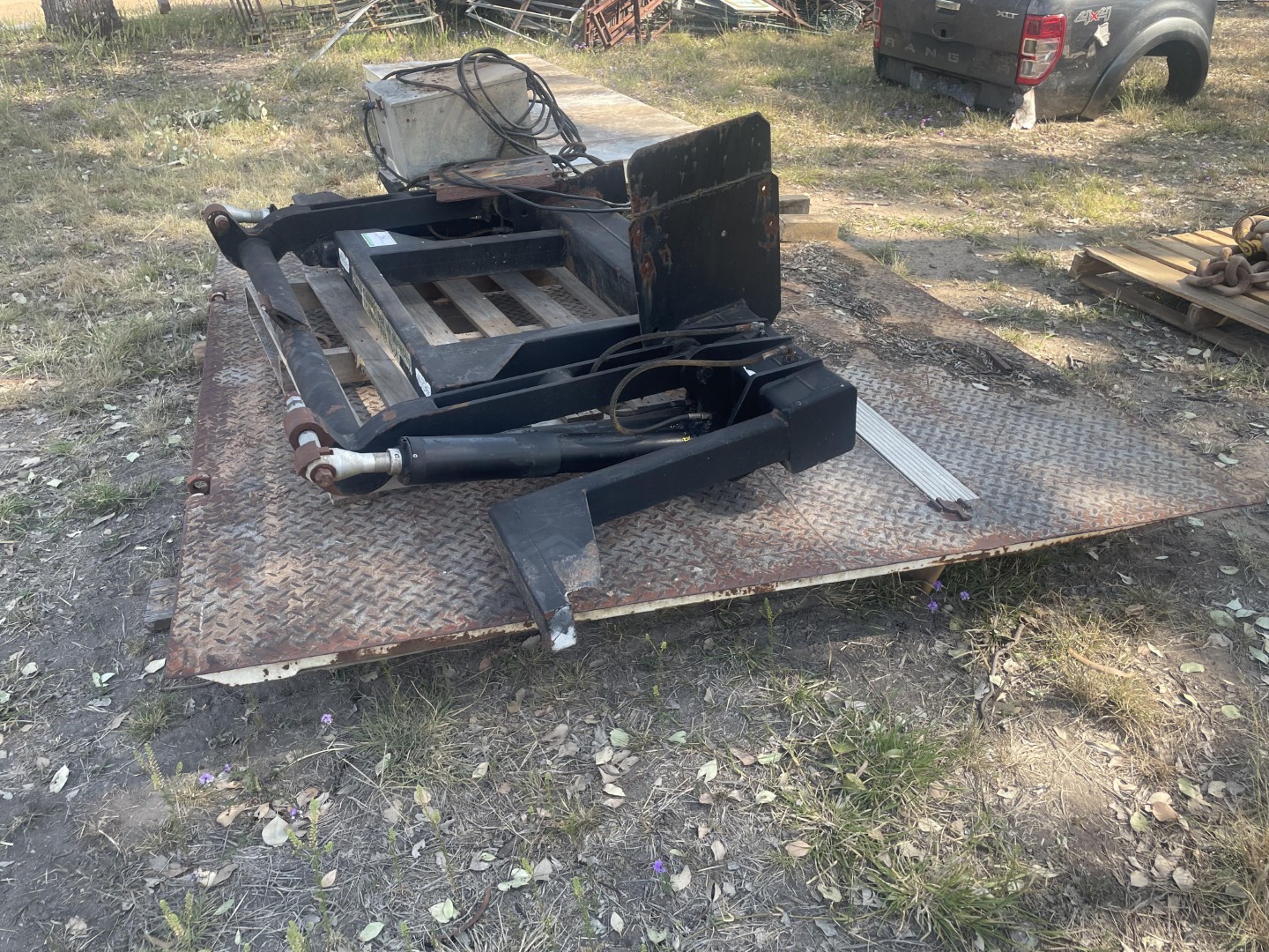 Lot 51. Tail gate hydraulic loading platform , large area, was fitted to Mitsubishi FK 600 (lot 4 in this sale).