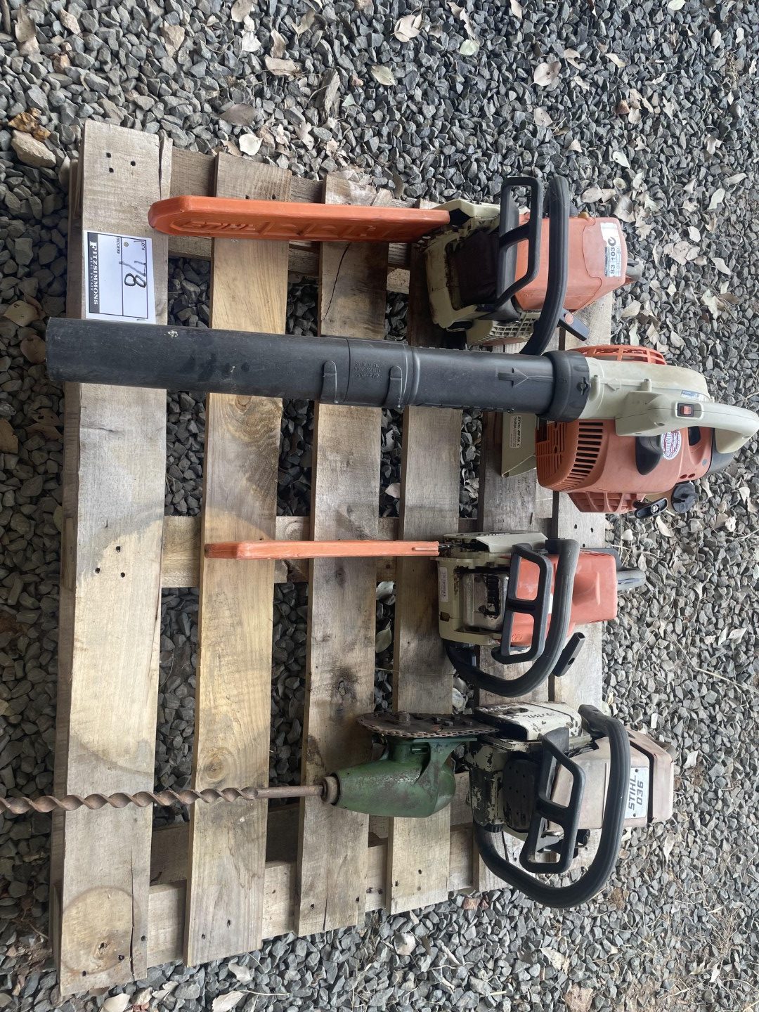 Lot 78. 3 x Stihl chain saws and Stihl petrol blower – all were running but not for some time.