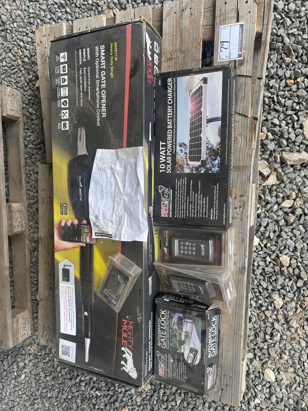 Lot 79. Mighty Mule smart gate opener system, 12volt, model MM571W, complete in box, never used, as used in the USA.