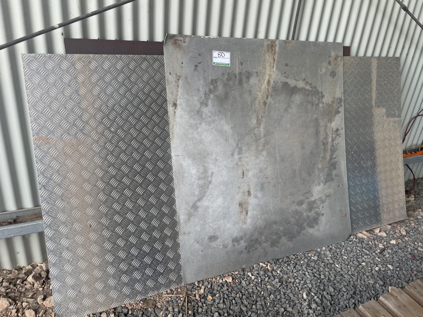 Lot 80. Piece of alloy checker plate,2 pieces steel plate (inspection recommended).