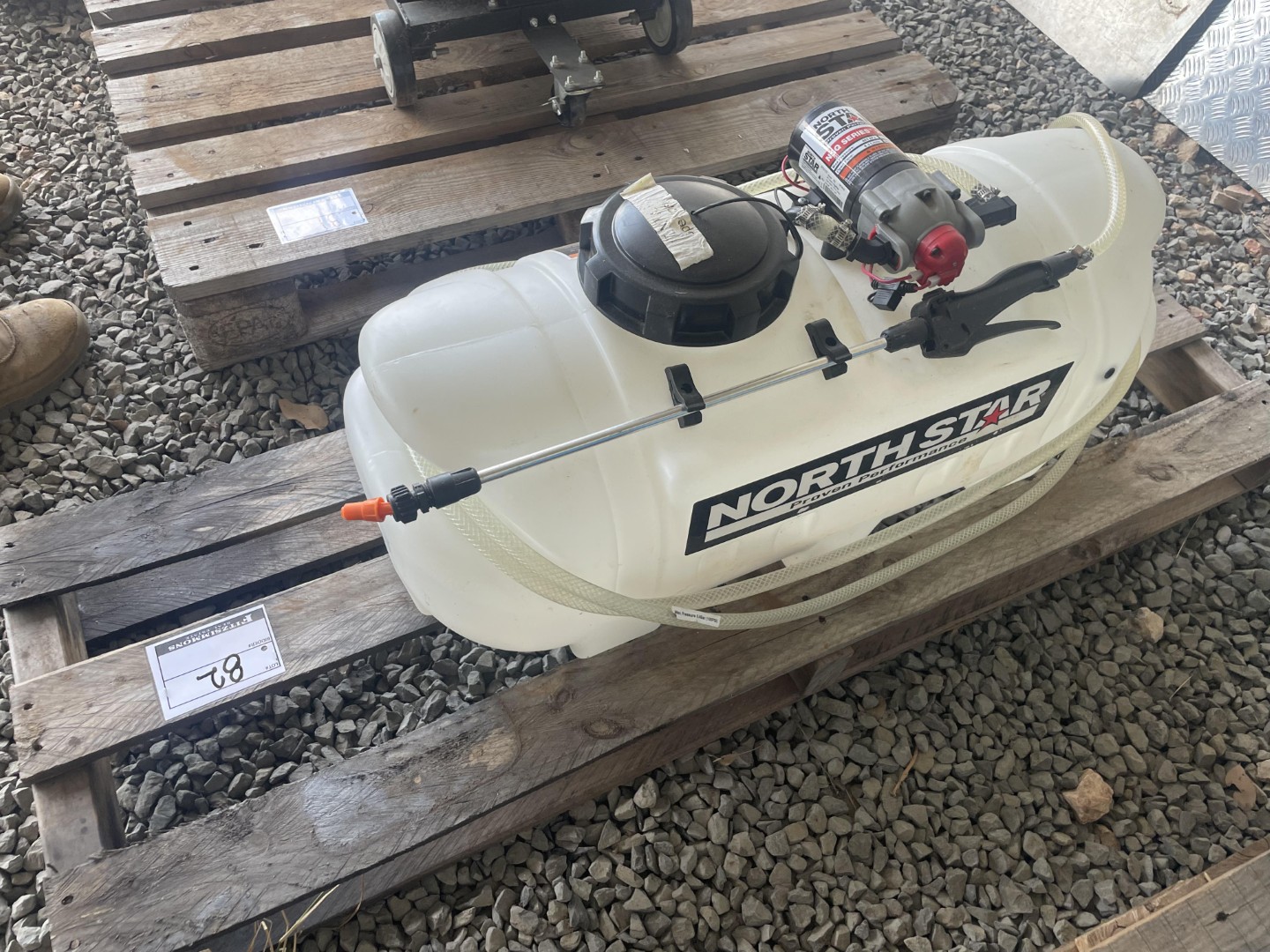Lot 82. North Star brand 53litre poly tank, with 12volt pump and hand wand, suit quad, good goer.