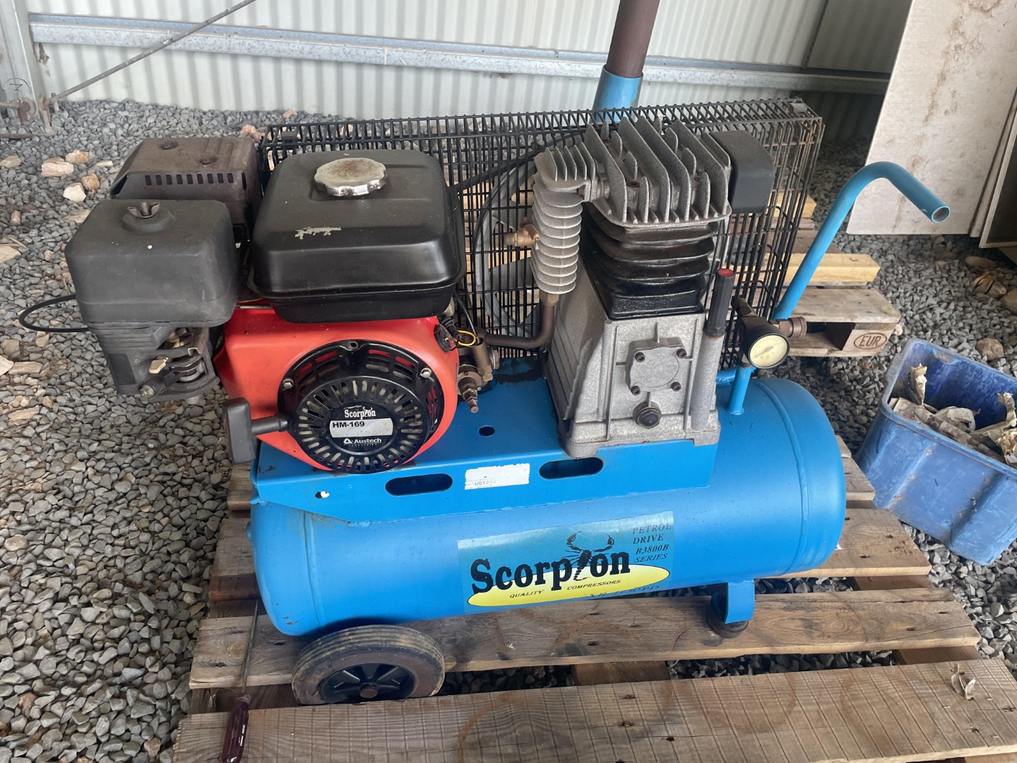 Lot 83. Scorpion air compressor, scorpion petrol engine ,stop start knob broken but runs well.