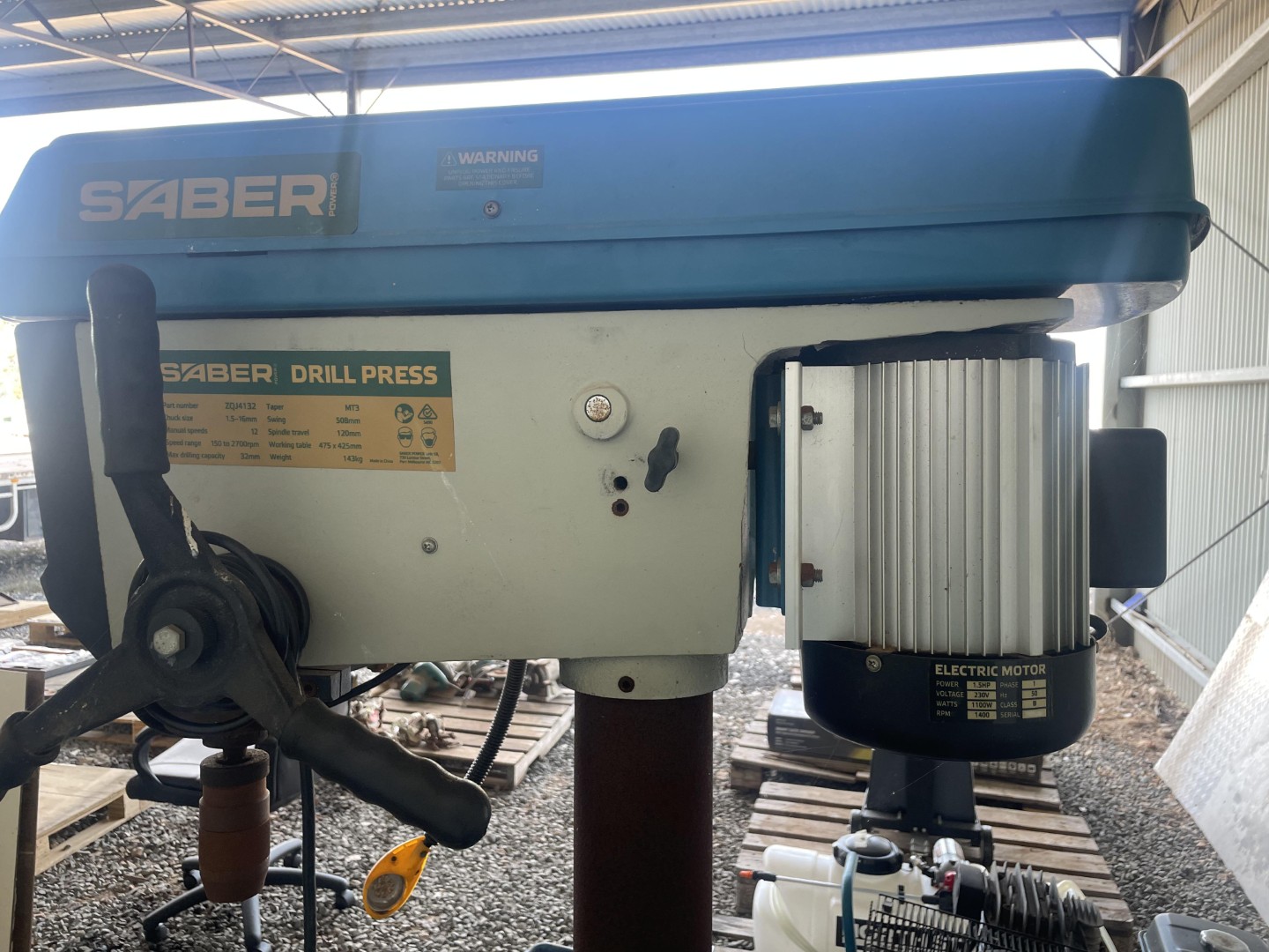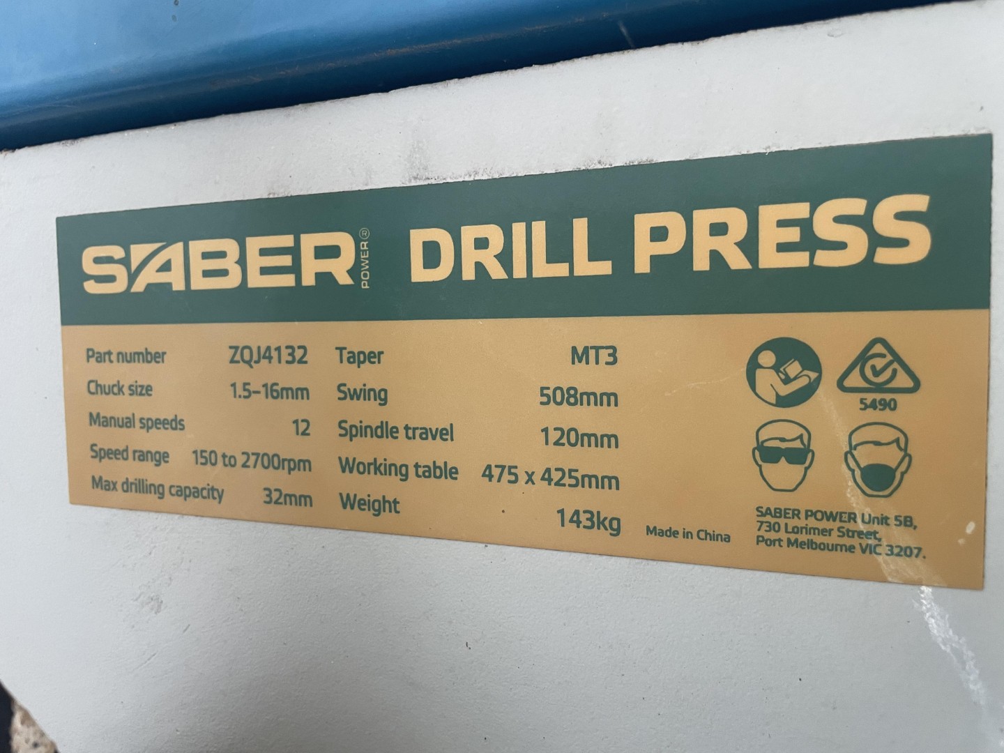 Lot 84. Saber Drill Press. Part no. ZQJ4132, 32 mm drill capacity, good goer.