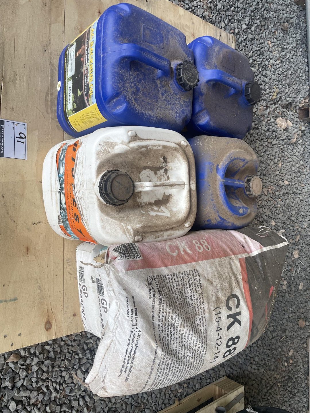 Lot 91. 3 x part drums back rub oil – part drum Sacoa Bio Parafficol , 2 bags of Concrete, 1 bag CK 88.